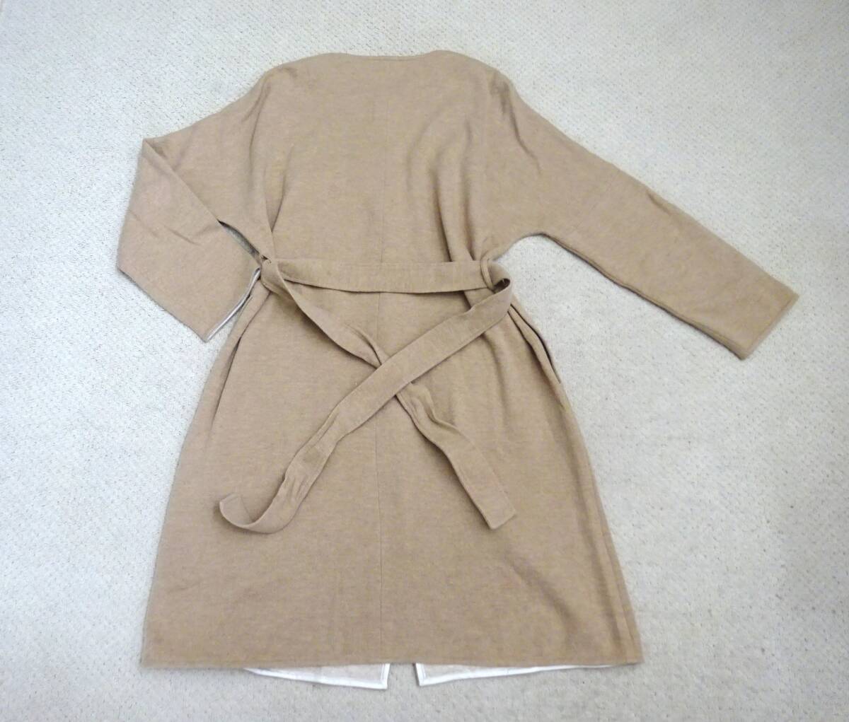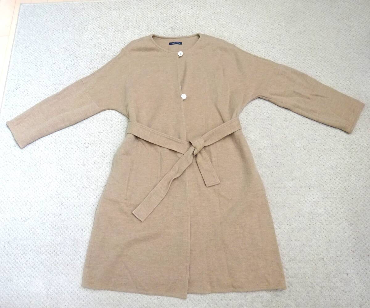 ■NEWYORKER ニューヨーカー★秋 冬 ミセス ベルト付き ノーカラー ロング ニット カーディガン コートになります。 ■お色はベージュ系になります。 サイズ表記は9ARです。普通のMサイズになります。実測サイズ:衿元から袖口まで約68㎝、身幅約60㎝、着丈約102㎝ 素材: 毛47% コットン37% ナイロン16% ■飽きがこないシンプルなデザインです♪ ■目立つようなシミ・汚れなどはなく、着用感も少なく、全体的綺麗な状態です。美品ですが、USEDとして上記の状態をご理解いただける方のご入札をお願いします。 | |||