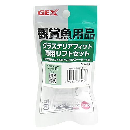 「GEX GX-85 グラステリアフィット専用リフトセット(フタ受けリフト4個/シリコンスペーサー4個)」▼4972547042408▼(商品説明)-/-/13385・パッケージ個数:1・グラステリアフィット専用リフトセット商品紹介 GEX グラステリアフィット専用の用途に合わせて開口部を調整できるリフト&スペーサーです。細いコードから、エアーチューブやヒーターなどのコードまで通るように開口部を調整できるので、本格的なアクアリウムや苔を使ったこだわりテラリウムができます。 使用方法 本品はアクアリウム用品です。目的以外の用途では使用しないでください。