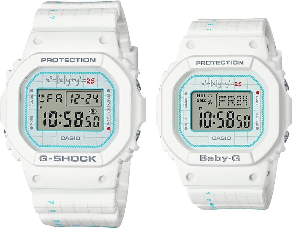 ペアモデルのG-SHOCK(DW-5600LJ)と並べるとハートが現れ、二人の絆を感じられます。