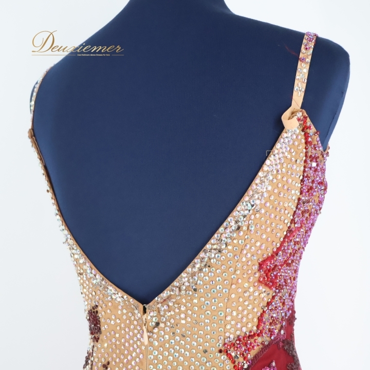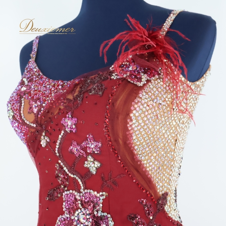 | 【商品名】社交ダンス 衣装 ワンピース ドレス 【サイズ】 平置き実測:総丈約130cm(裾~肩部まで)、身幅約36cm、ウエスト約29cm~ ※実測の為、多少の誤差はご了承ください ※9号のトルソーには窮屈なイズ感です 【仕様】 ・背面ファスナー仕様 ・レオタード(ボタン)仕様 ・上半身のみ伸縮性有り ・胸パッド有り ------------------------------------ 【ポイント】 ▽edda hsu エダスー ▽深い赤色がおしゃれな色味 ▽ふんわり膨らむスカート3枚重ね ------------------------------------ 【撮影時使用トルソー】 種 類:女性用トルソー9号 (一般的に使用されるサイズです) サイズ:肩幅約37cm、バスト約88cm、ウエスト約66cm、ヒップ約89cm |