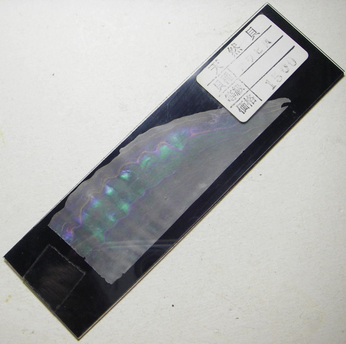 天然貝 アワビシート 約9.5×3.5cm 未使用長期保管品です。 未使用長期保管品です。パッケージにはスリキズ・黄ばみ等がございます。 他にも気付かない点があるかもしれません。