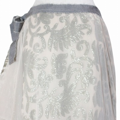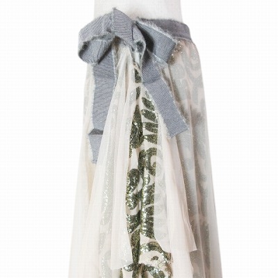 イエナ IENA ラブクール LA BOUCLE スパンコール刺?スカート ロング チュール ウエストリボン 38 M相当 ベージュ系 X レディース