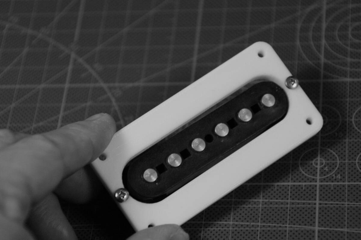 シングルコイルピックアップをハムバッカー用プラットフォームに装着するためのコンバージョンプレートです。
