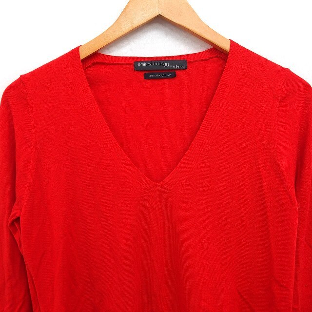 イミット オブ エナジー レイビームス emit of energy Ray Beams ウール ニット セーター 長袖 Vネック 無地 レッド 赤 /FT44 レディース