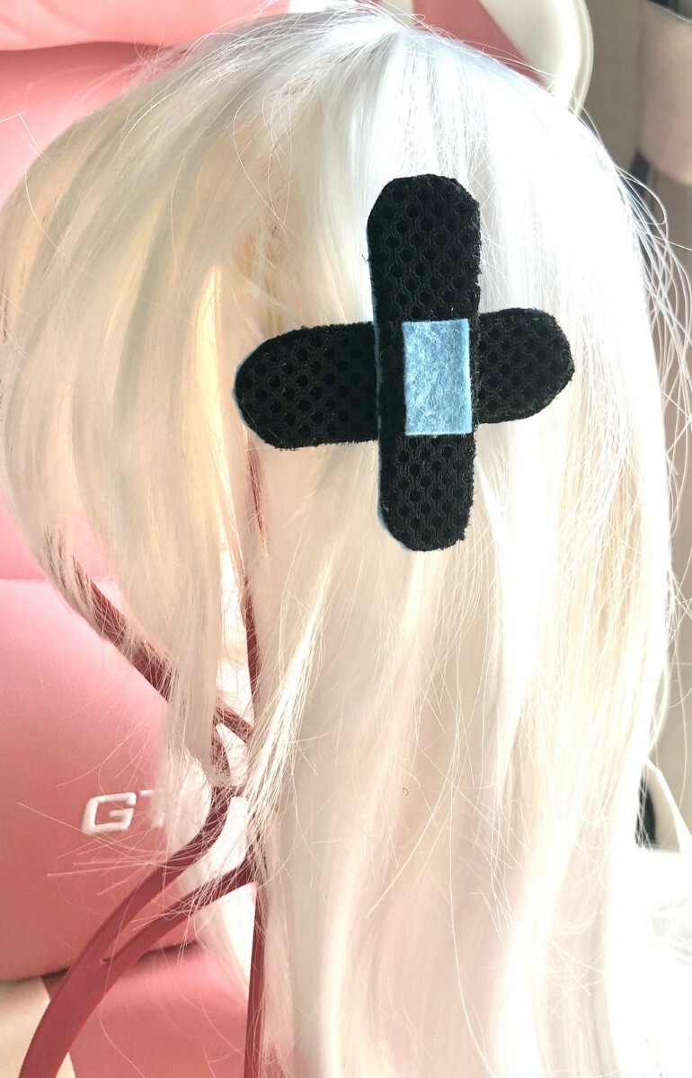 新品 ばんそうこう ヘアクリップ 黒×水色 十字Ver. コスプレ 絆創膏 地雷系 サブカル 堕天使界隈 暗黒界隈 悪魔界隈 ぬた系 あのちゃん系