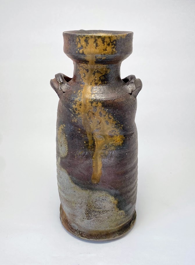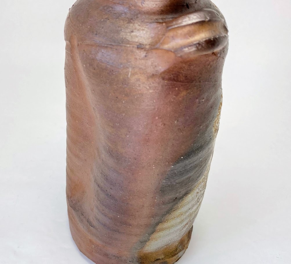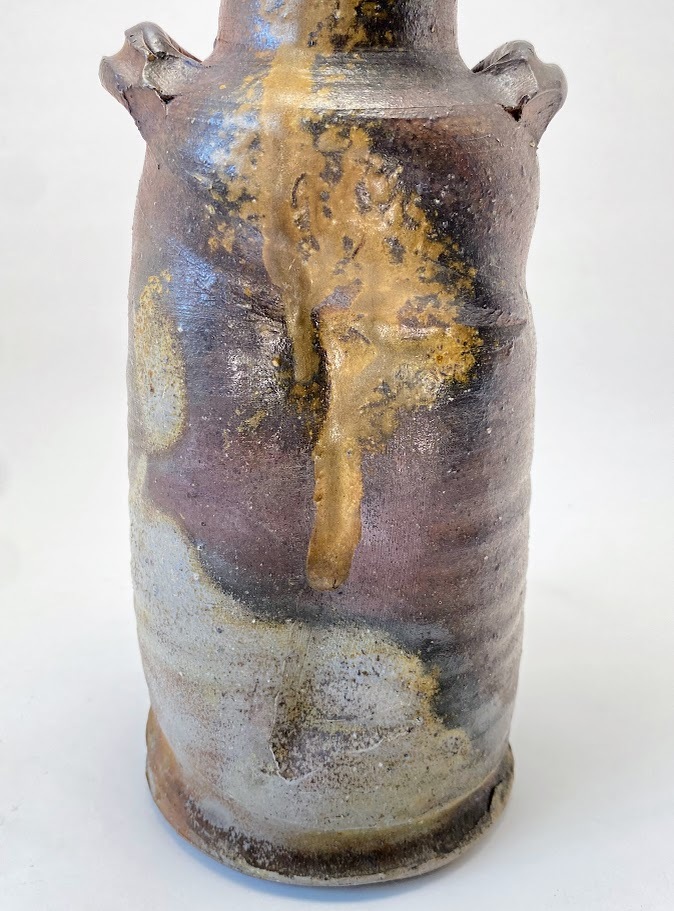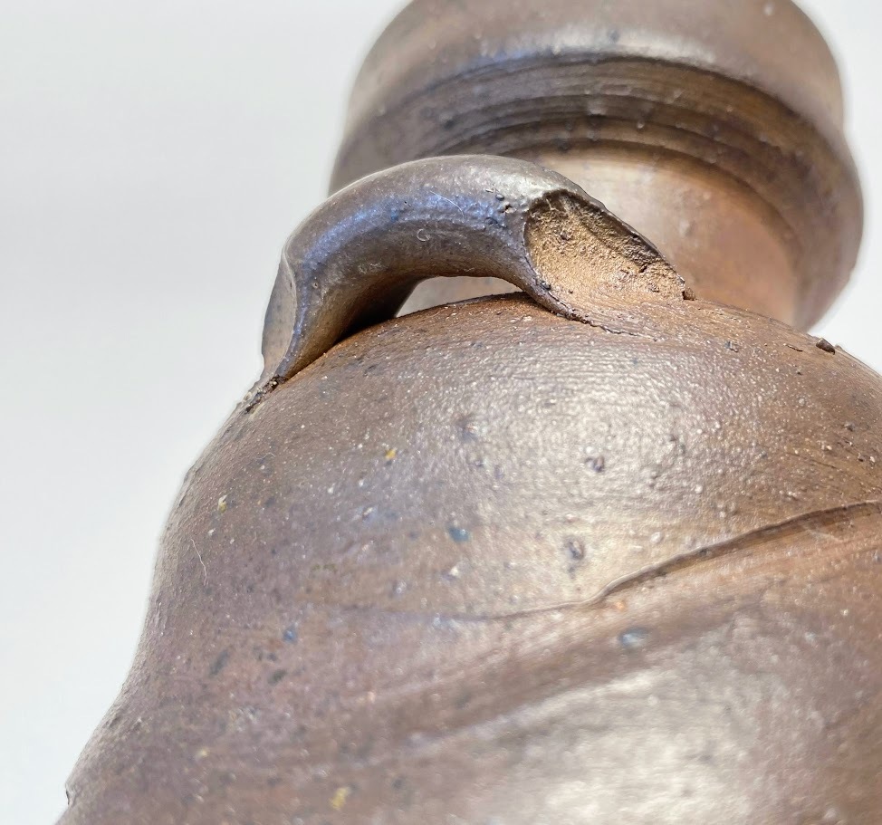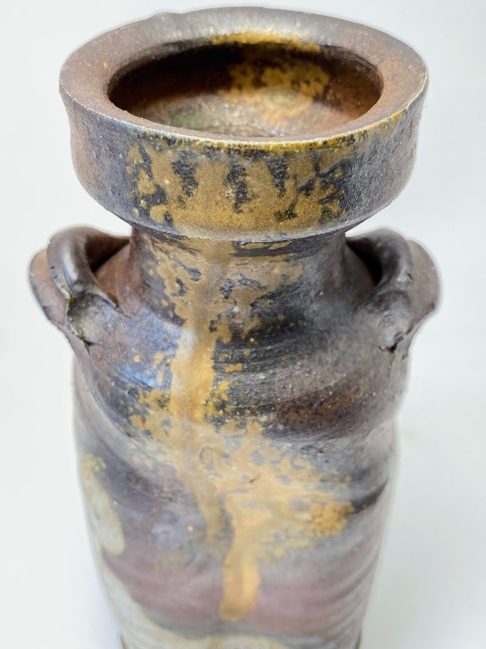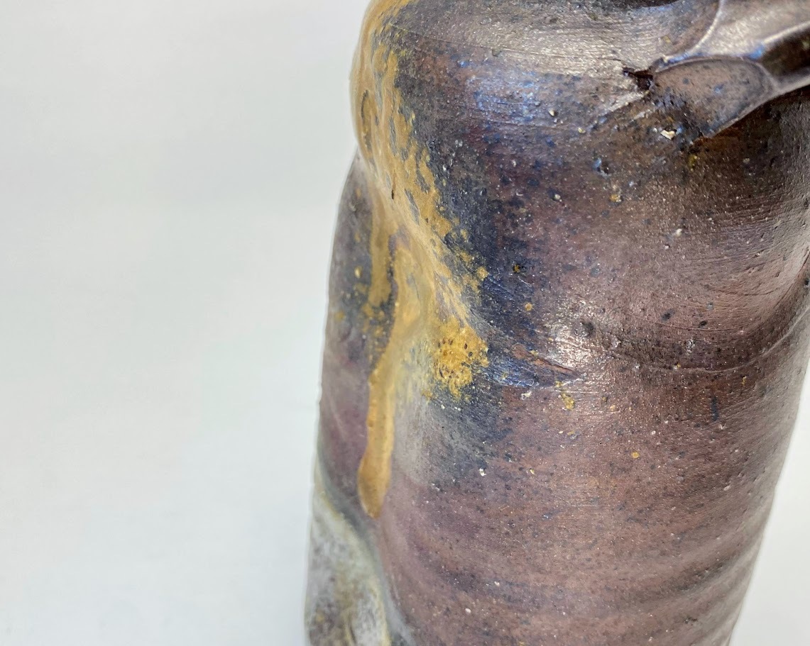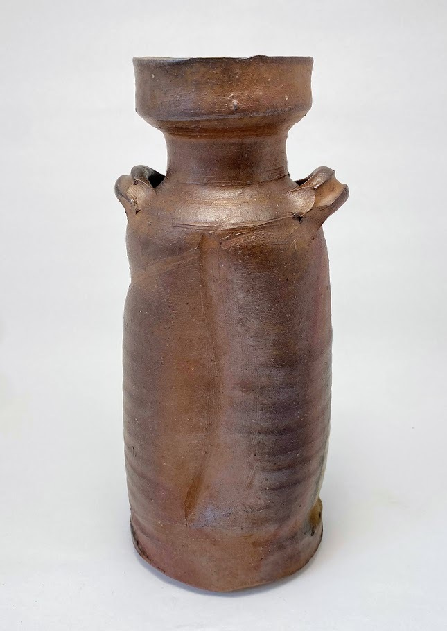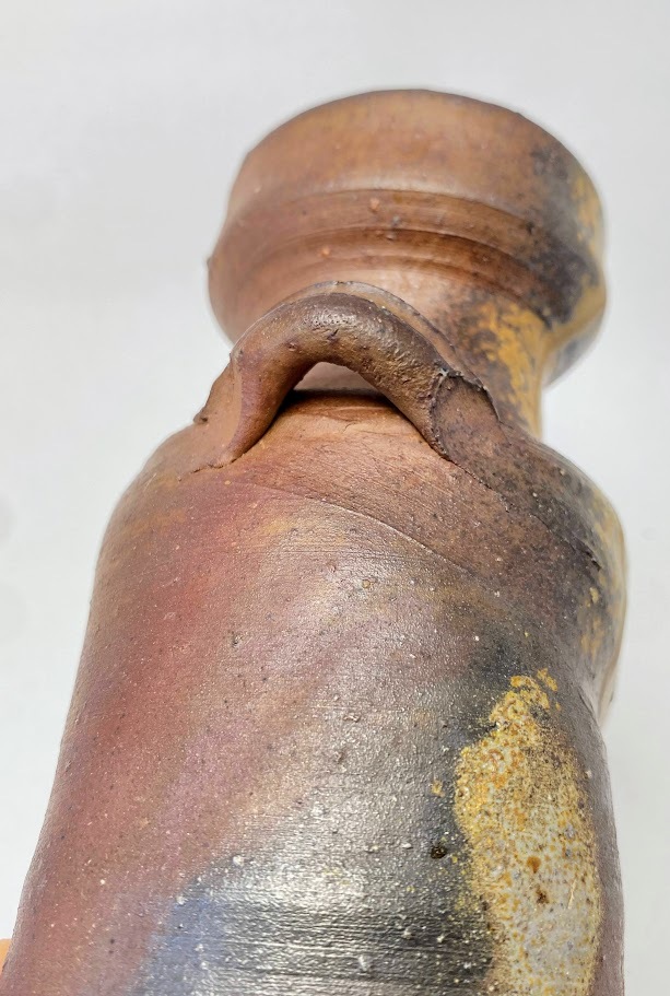 【陶印有り】備前焼 耳付 水差 ひだすき 箆目 花瓶 徳利