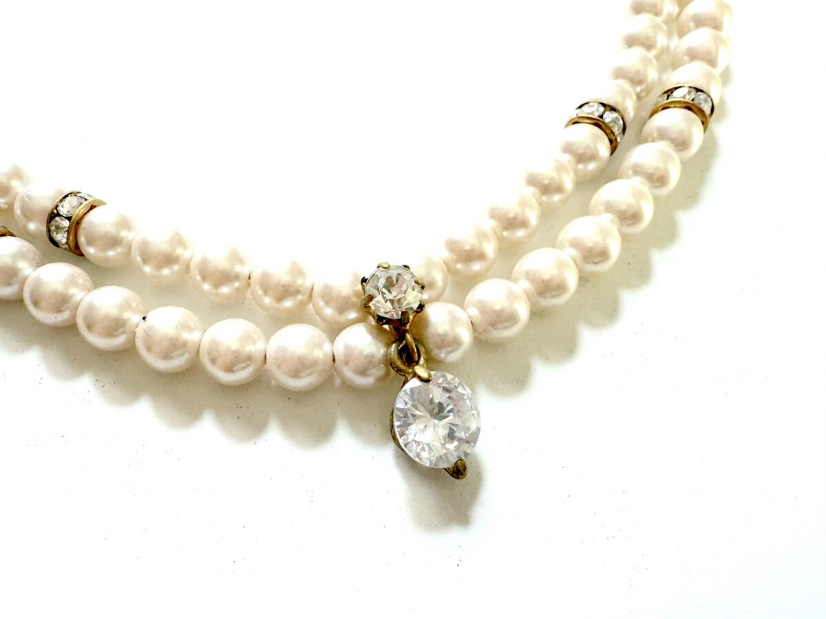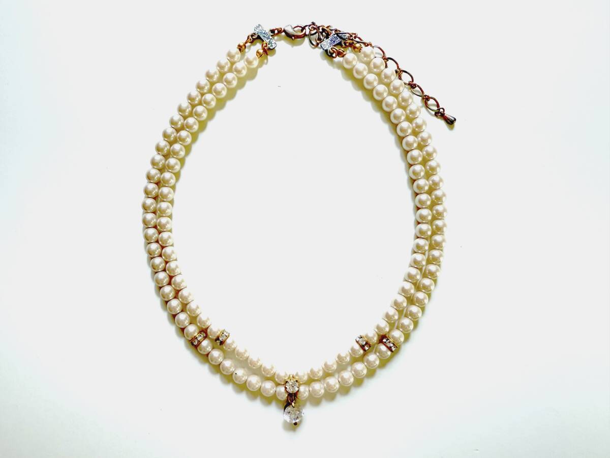 送料180円 匿名配送 vierge ヴィエルジュ ネックレス 二連ネックレス パール風 真珠風 金色 ゴールド系 パーティ 結婚式 二次会 大人 上品