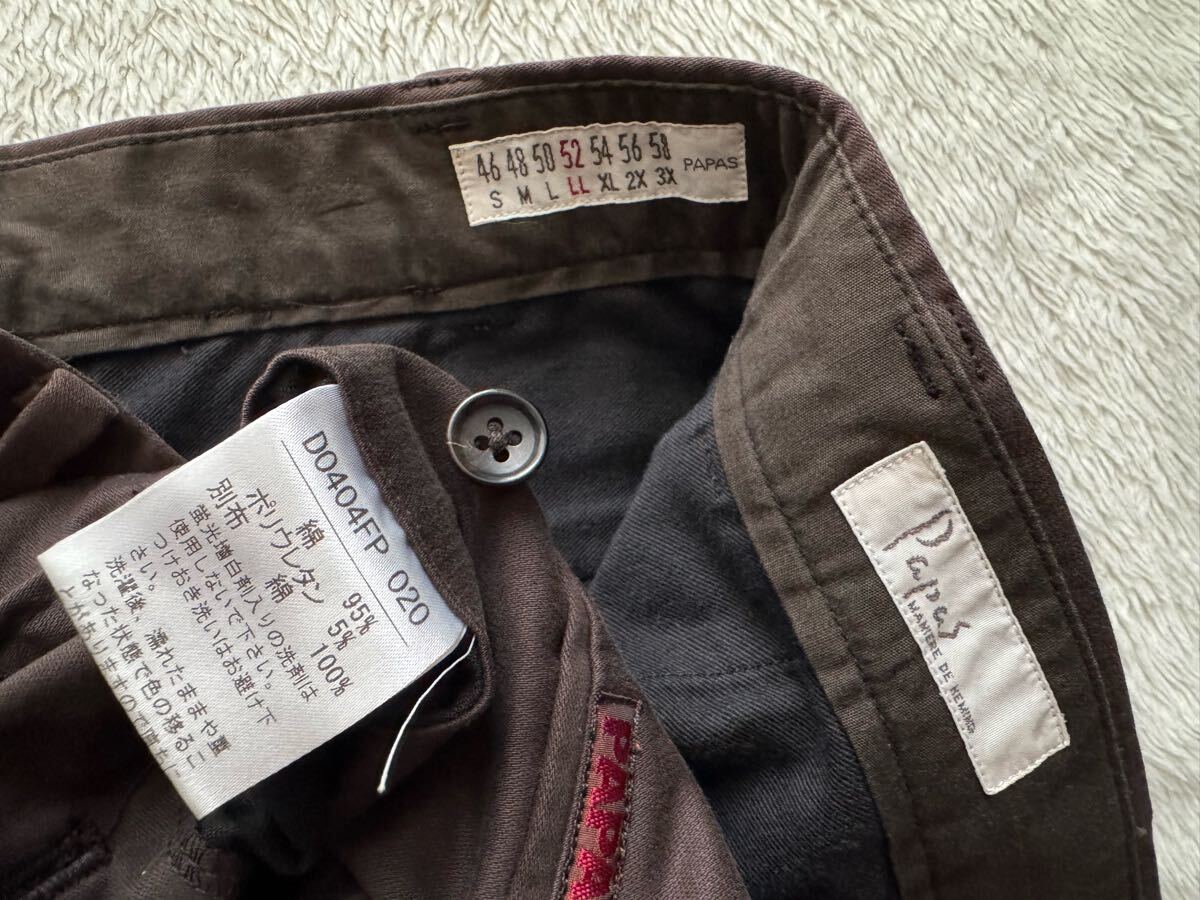 PAPAS size52-LL 日本製 コットンスラックス コットンパンツ ツータック メンズ ダークブラウン パパス