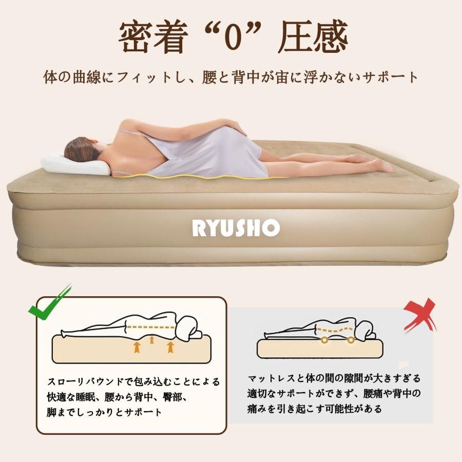 【快適なサポートと睡眠】:インフレーダブルベッドで地面から40cmの高さ衝撃を吸収する設計で多点サポートによる圧力分散を実現。体の曲線にフィットし、スローリバウンド機能により、体を優しく包み込み、静かな睡眠環境を提供し、アウトドアでの体験をより快適にします。