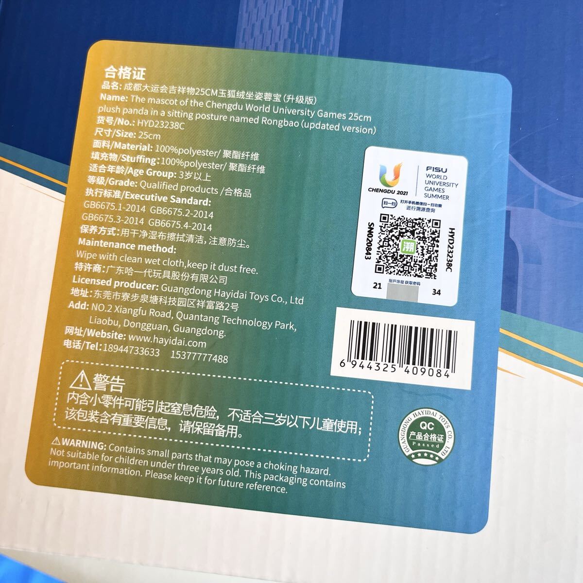 【未使用】成都市ユニバマスコット ぬいぐるみ 25cm 蓉宝 ロンバオぬいぐるみ おもちゃ フィギュア