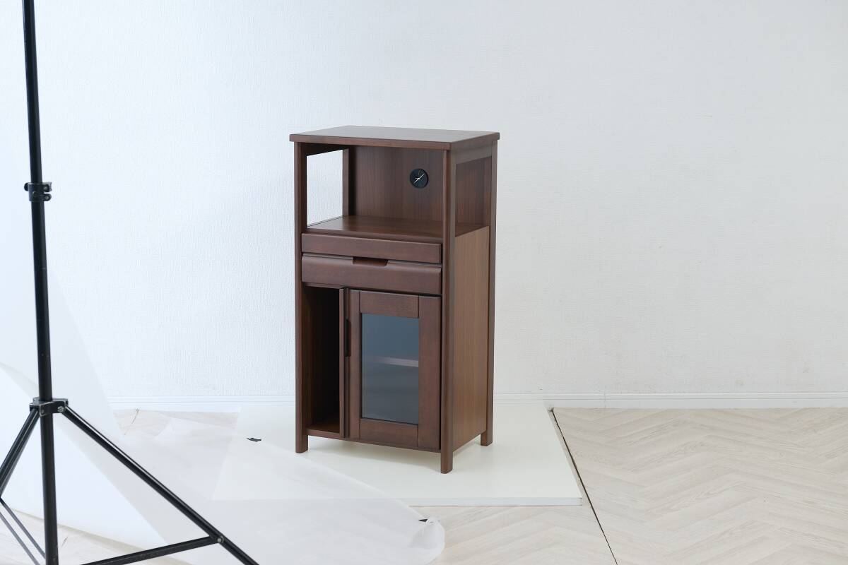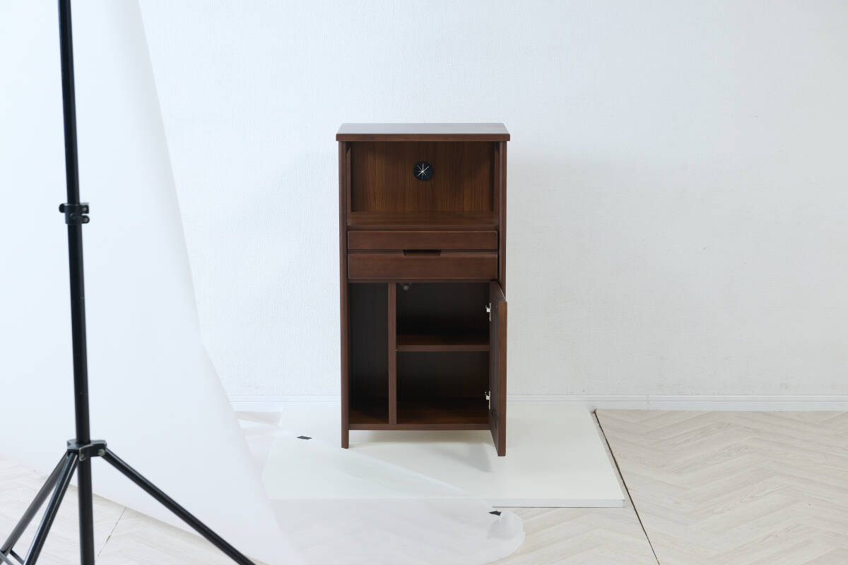 ■商品サイズ/本体:(約)幅45x奥行33x高さ85cm、オープン部:(約)幅40×奥行28×高さ22cm、扉横オープン部:(約)幅11×奥行28×高さ40cm、引出:(約)幅37×奥行22×高さ9cm、扉内:(約)幅25×奥行28×高さ40cm