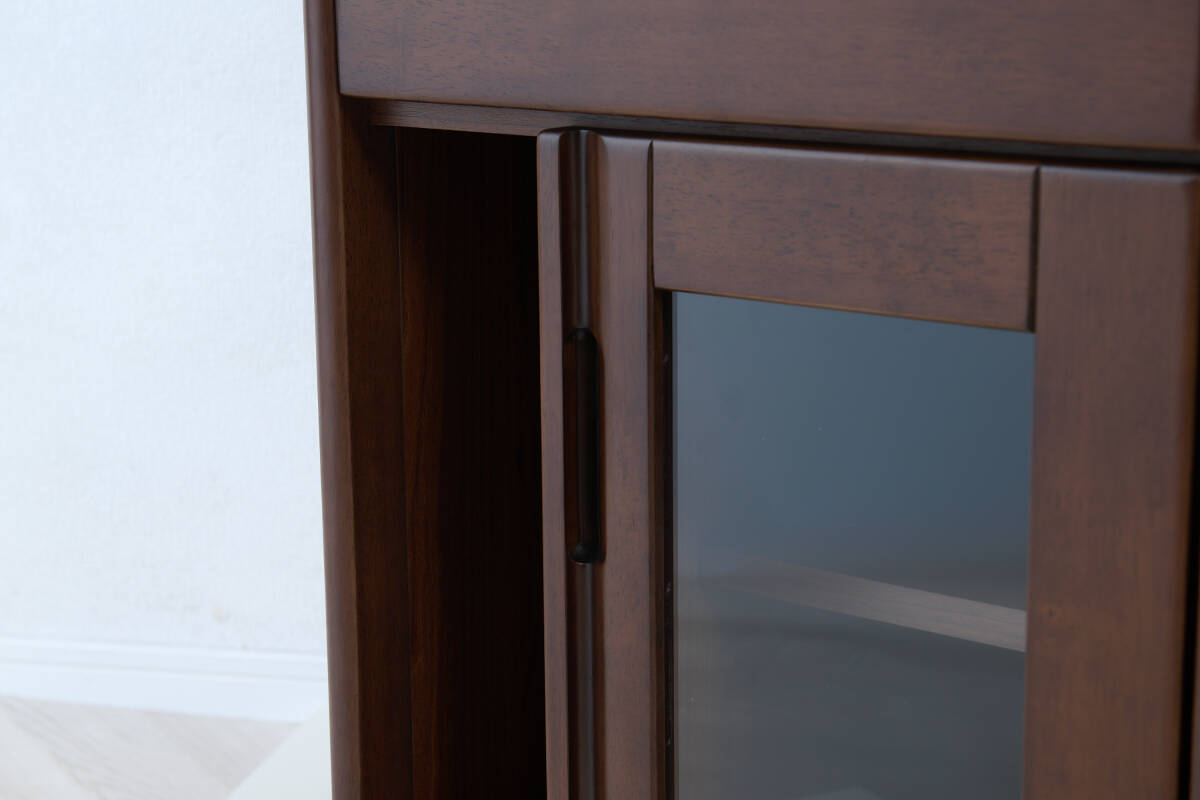 ■商品の仕様/表面:ラバーウッド無垢、側面:強化シート、扉:ガラス