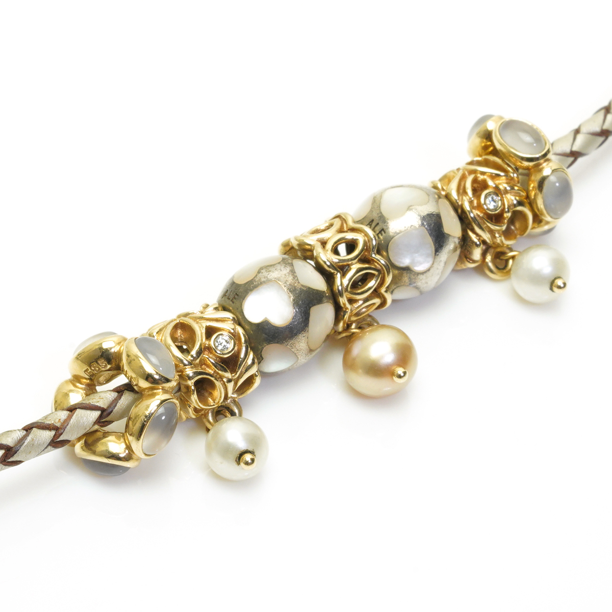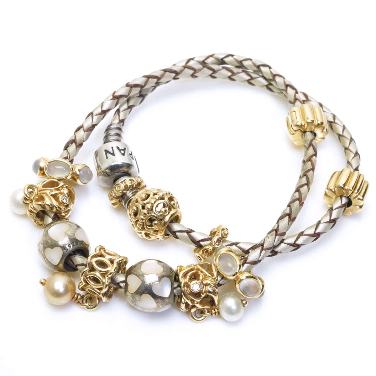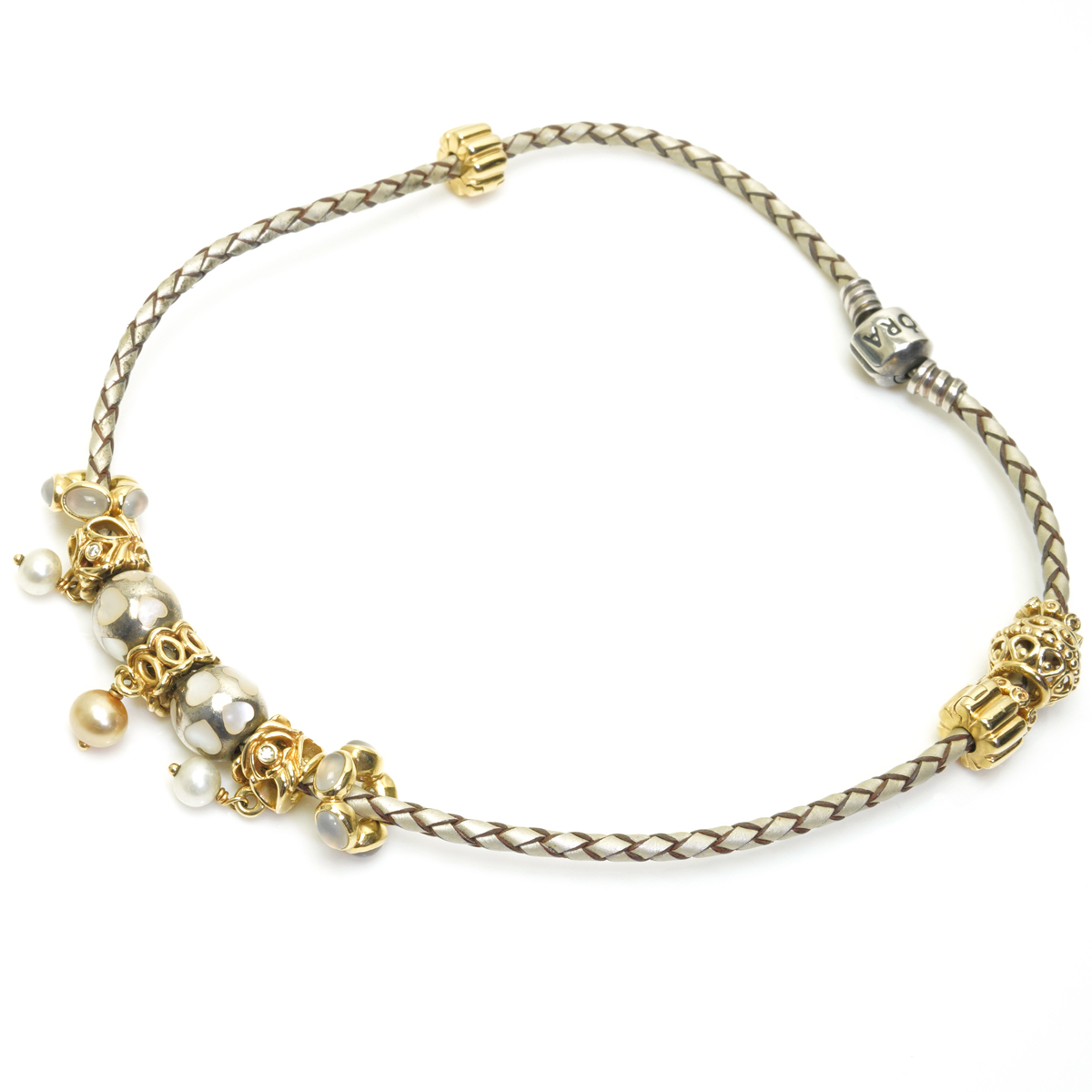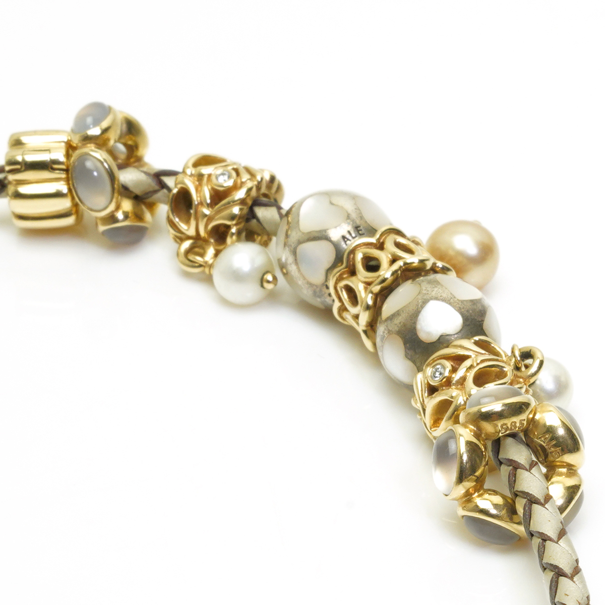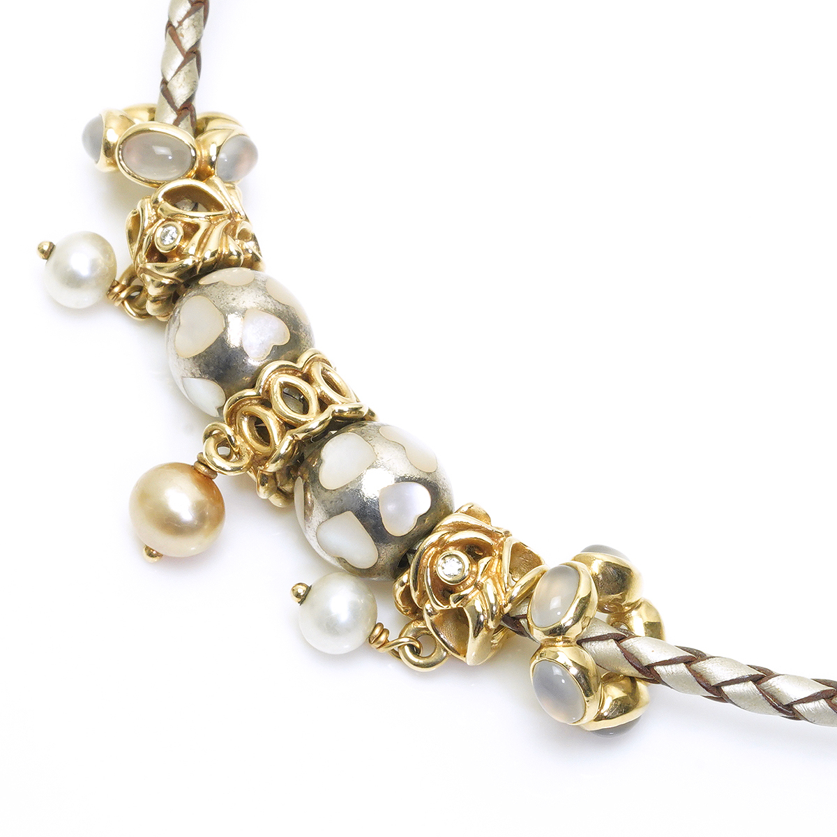 PANDORA パンドラ 585 K14 14K チャーム 二重 ブレスレット チョーカー パール ムーンストーン ハート
