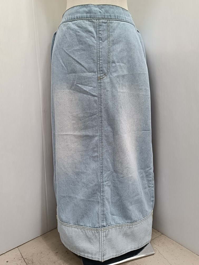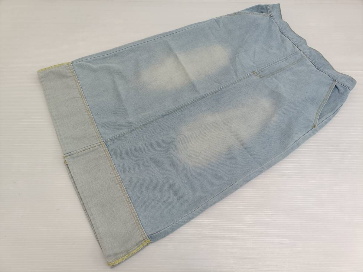 「Rafraf/ラフラフ」のデニムロングスカート ウエストゴム スリット 切替 レディース ライトブルー サイズLLPです。