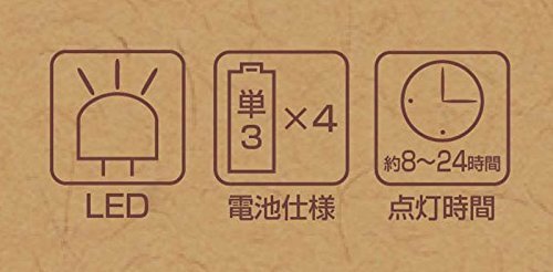 ・仕様/その他:光源:暖色LED(発光ダイオード) 12個 電源:DC6V単3形乾電池4個使用(別売) 電池寿命:連続最小約8~最大24時間(アルカリ乾電池使用時) ※使用状況により異なります。