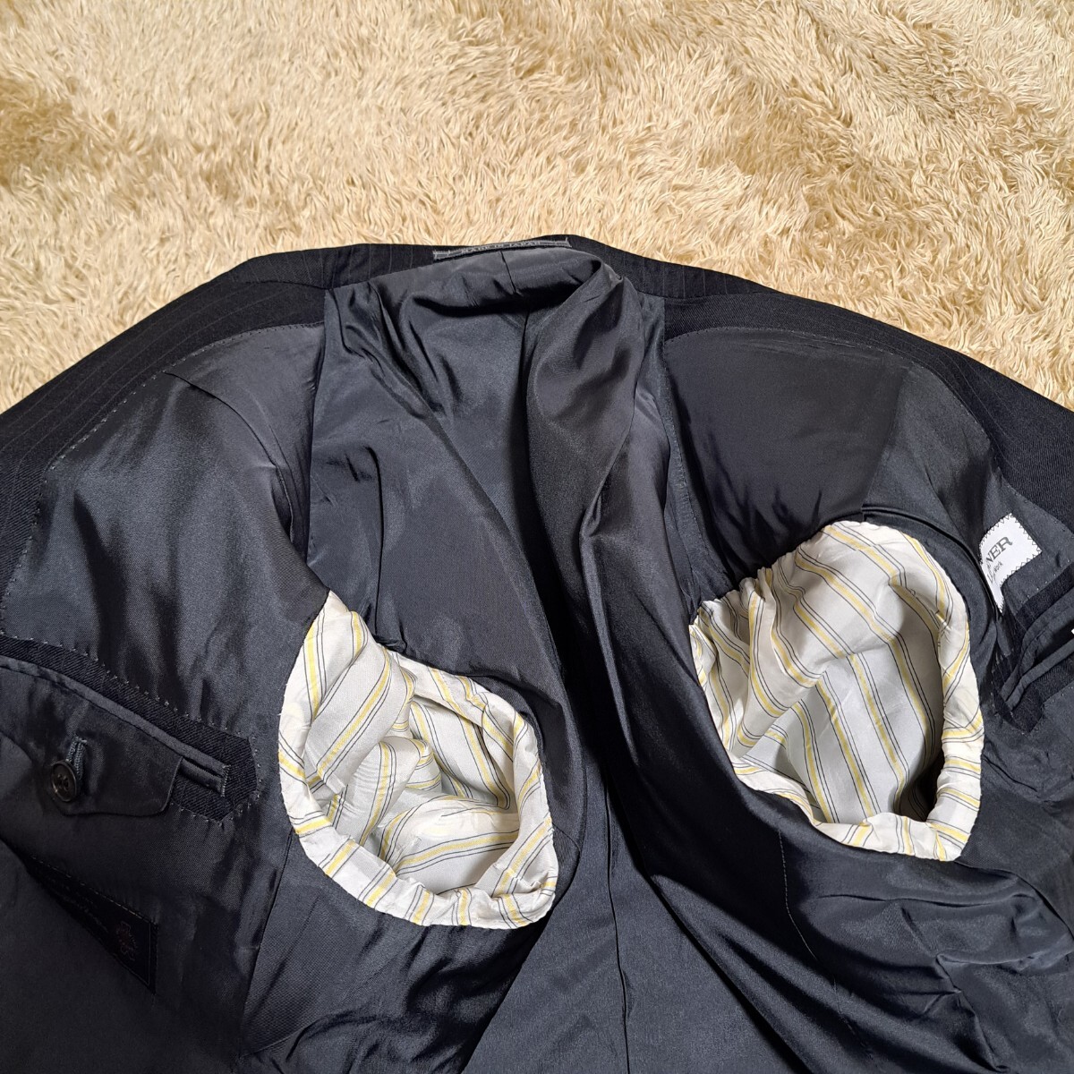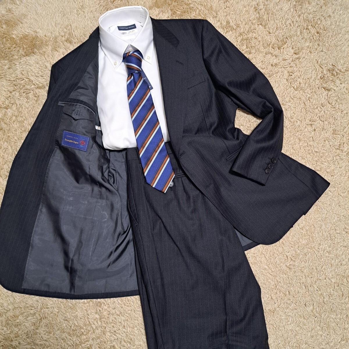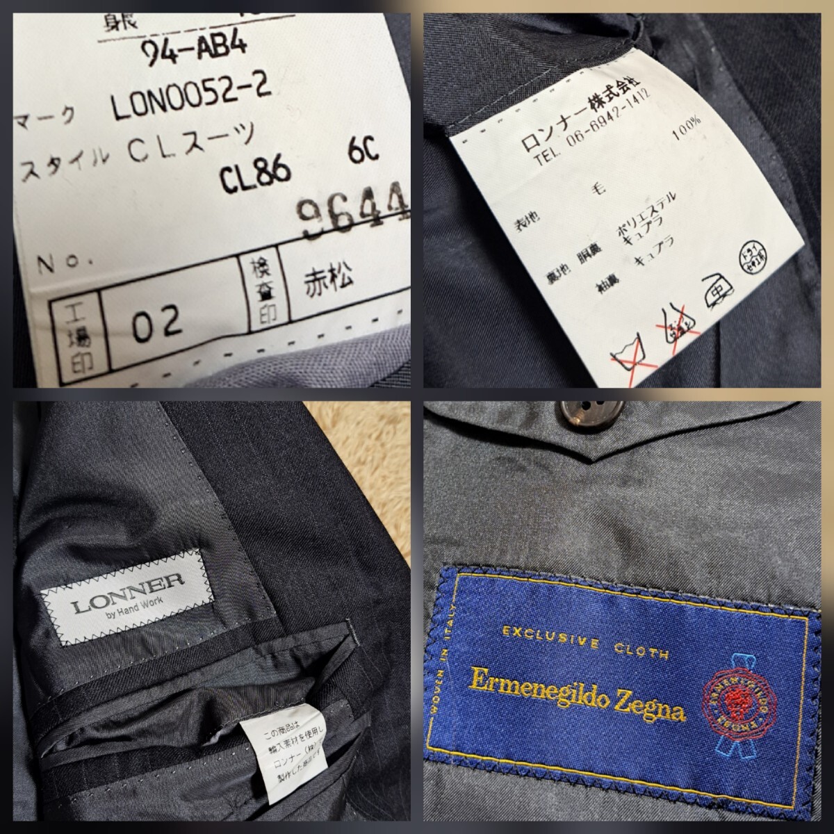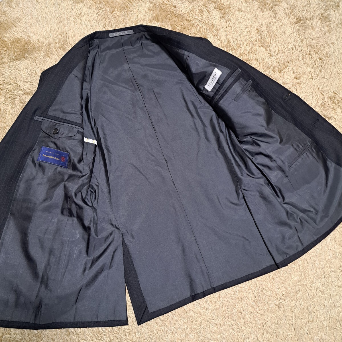 高級スーツ LONNER ロンナー ゼニア セットアップ スーツ ストライプ ZEGNA Mサイズ程 2b 近代モデル 総裏
