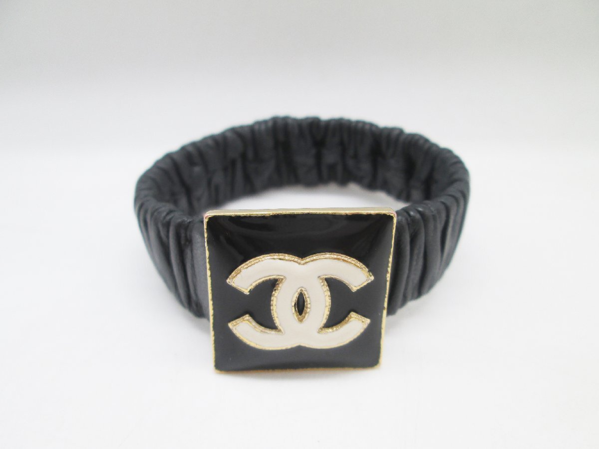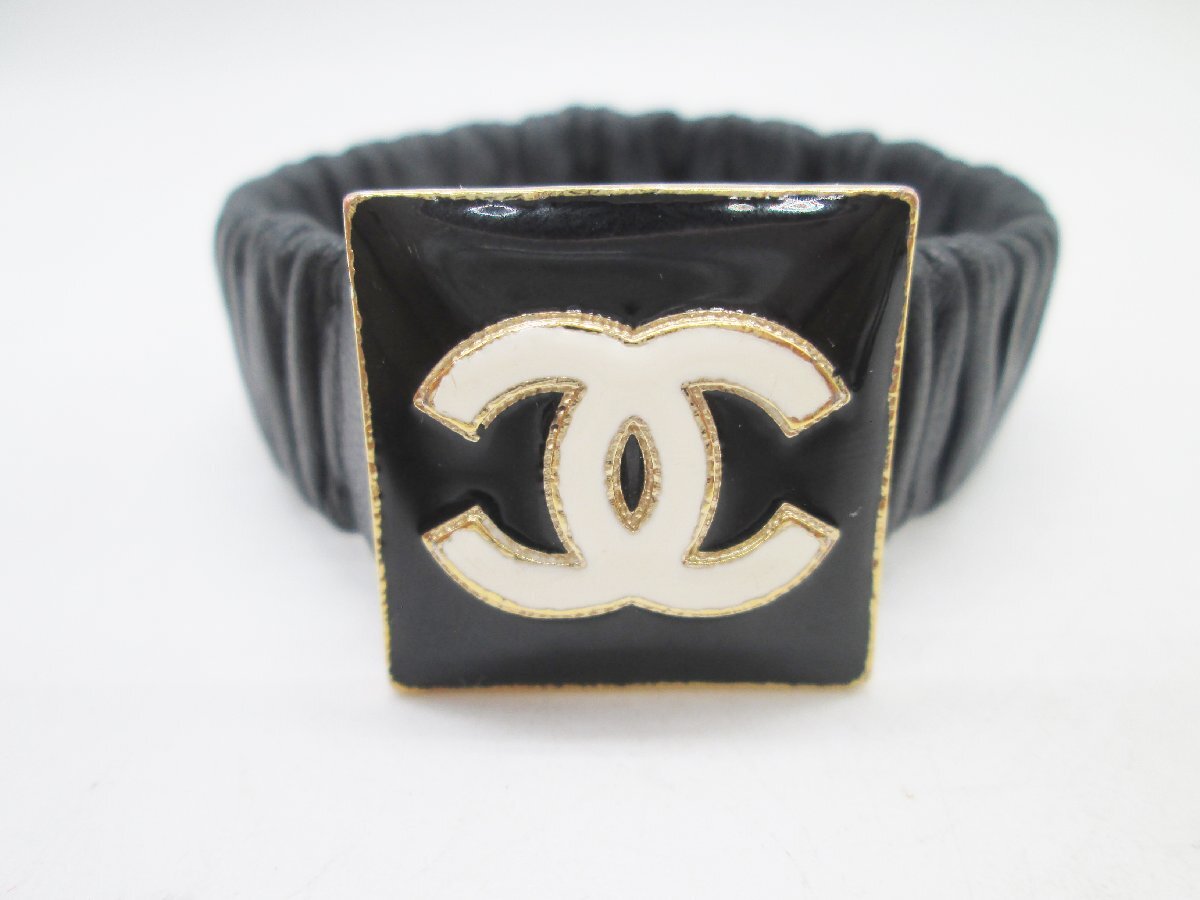 ■CHANEL シャネル ココマーク B22 A レザー ヘアゴム シュシュ ヘアアクセサリー 黒 ブラック アクセサリー■/A