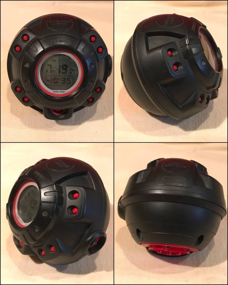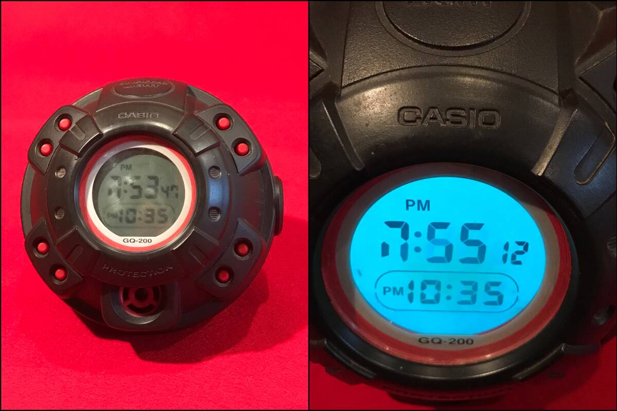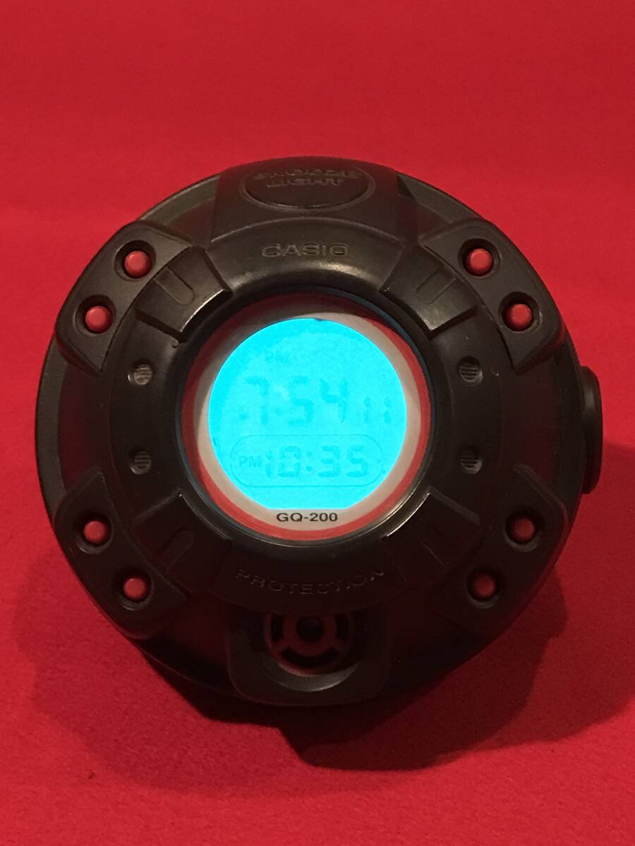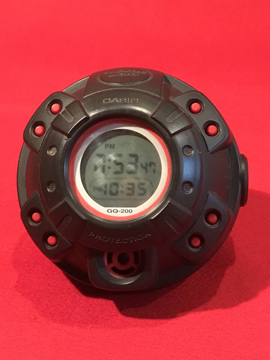 A9600●珍品 CASIO/カシオ G-SHOCK PROTECTION 目覚まし時計 置時計 クロック マッスルタイム GQ-200 動作確認済 訳あり ジャンク品 約φ12.5×10㎝ ※後ろの黒いカバー部分欠品(画像5.6.7) ※動作し、アラームも鳴りますが液晶の時間と分の部分が欠けて表示されます。ジャンク品扱いとさせていただきます。予めご了承ください。