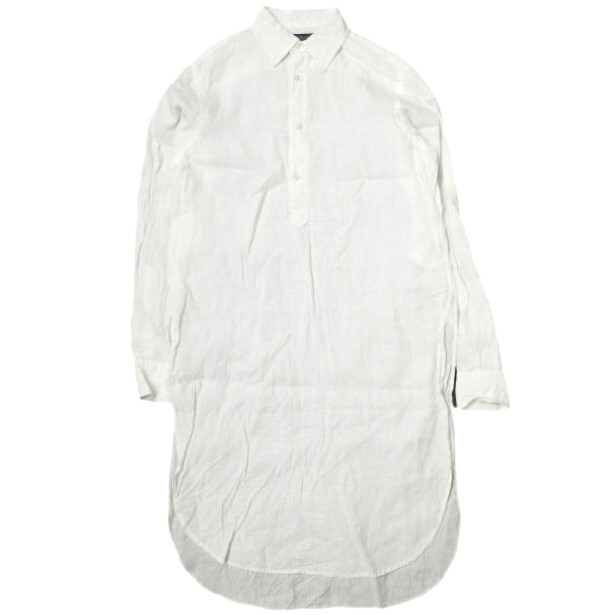 POLO RALPH LAUREN ポロ・ラルフローレン プルオーバーリネンシャツワンピース 211807062001 XS WHITE 長袖 ドレス 定価35,200円 g22851
