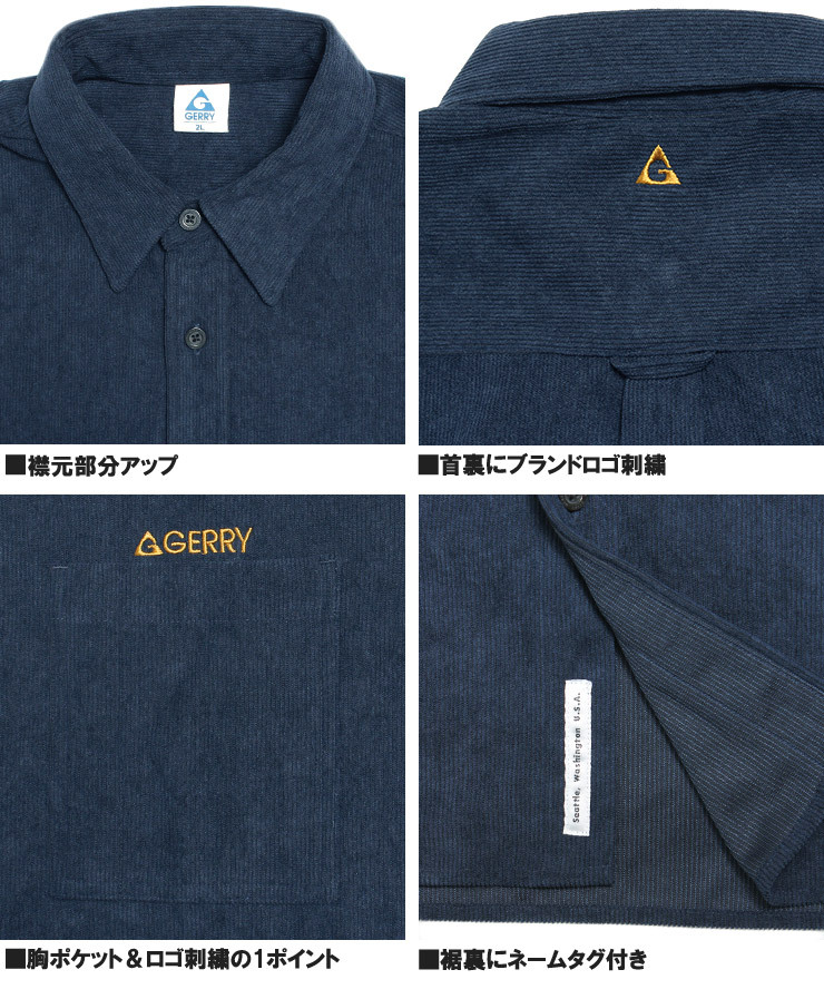 | 商品名 | 【新品】 4L ネイビー GERRY ジェリー コーデュロイシャツ メンズ 大きいサイズ ロゴ 刺繍 プリント 長袖シャツ |