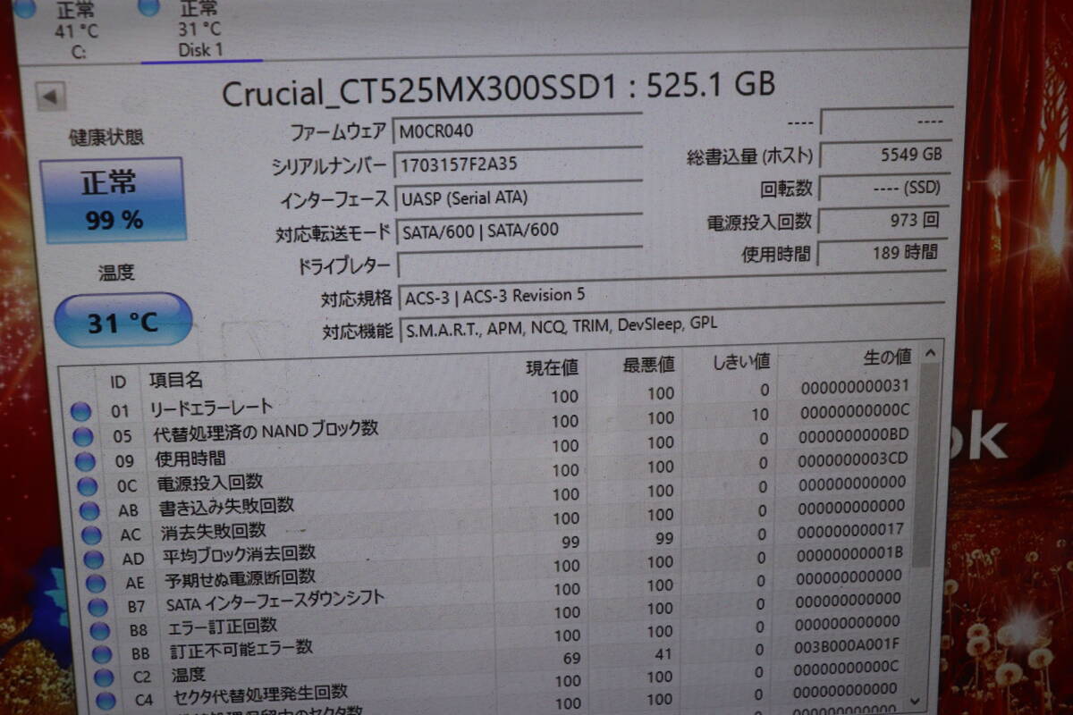 Y06/356 SATA 2.5インチ SSD 525GB Crucial MX300 CT525MX300SSD1 データ消去済み CrystalDiskInfo正常判定 | |||