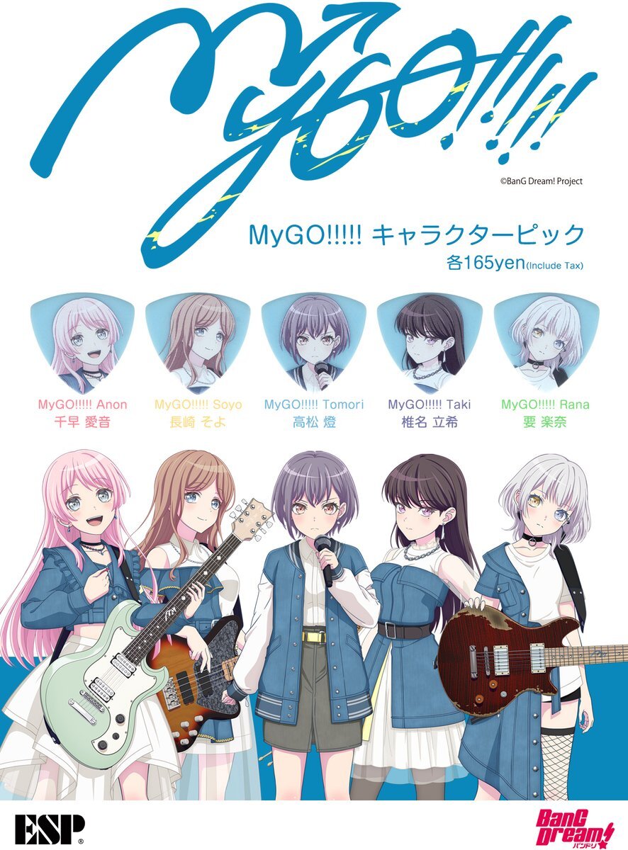 | MyGO!!!!!キャラクターピック MyGO!!!!!のキャラクターがプリントされたピックを発売します。片面にはキャラクターイラスト、もう片面にはMyGO!!!!!のロゴがプリントされています。 仕様:トライアングル/ポリアセタール/1.0mm/スカイブルー 撮影や印刷の都合上、実際の色と異なる場合がございます。 また、製品の品質向上の為、予告なく仕様等を変更する場合がございます。あらかじめご了承ください。 |