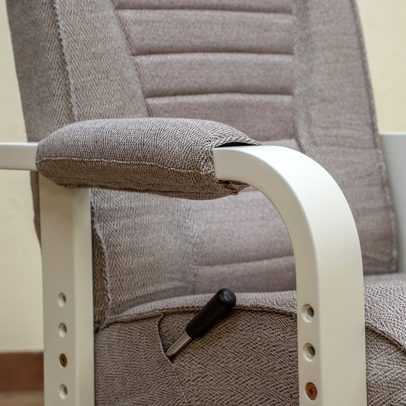 | 材質 | 構造部材:スチール 肘部:ラバーウッド・積層合板(PU塗装) 張り材:ポリエステル100% 内材:ウレタンフォーム 足裏用フェルト4枚付 |