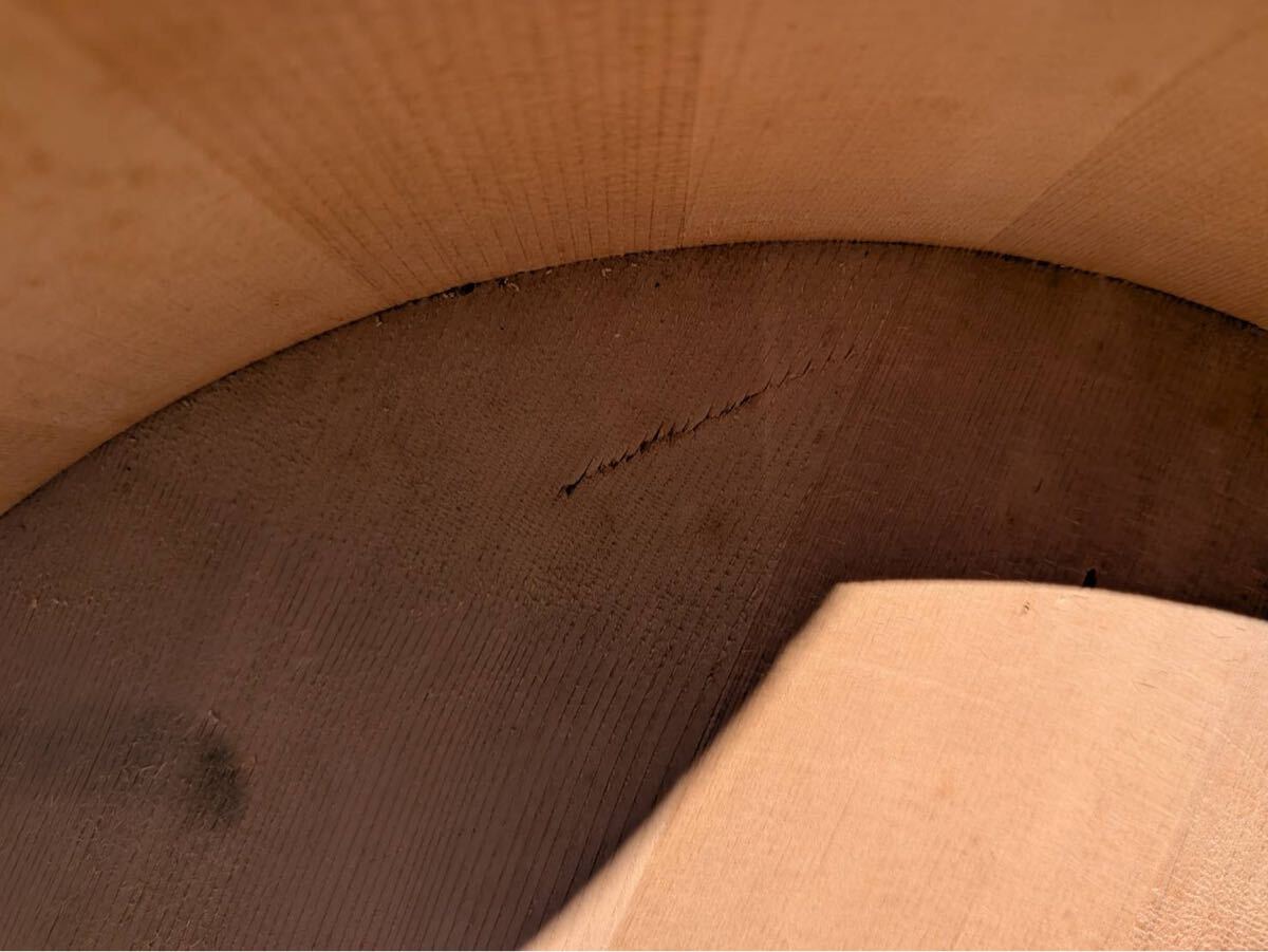 バンドや木のズレありますが、使用する際に水分を含むとバンドは上方にずらして固定、木も締まるようです。