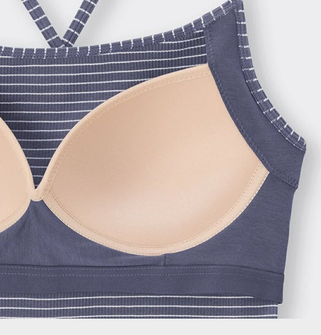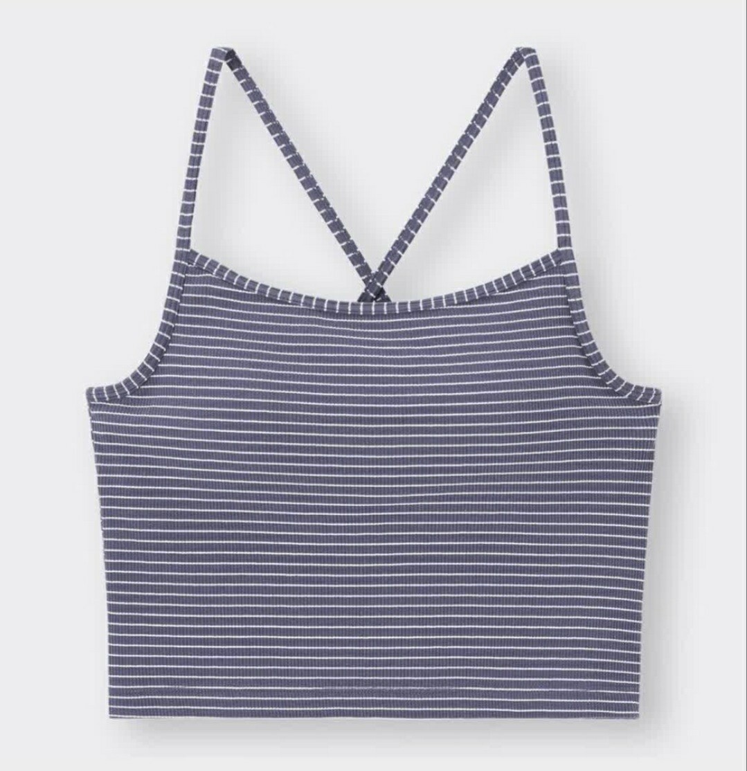 ジーユーのブラフィール 2WAYクロップドキャミソール、ストラップの調整可、後ろのみ取り外しが可能なためクロスすることも出来ます。
