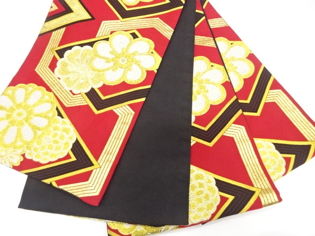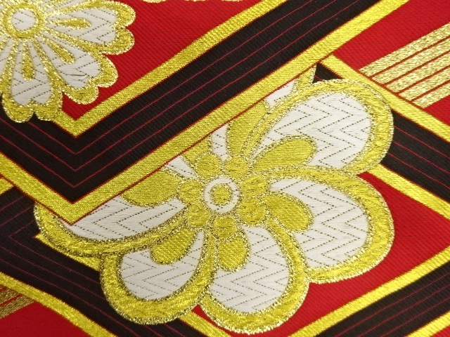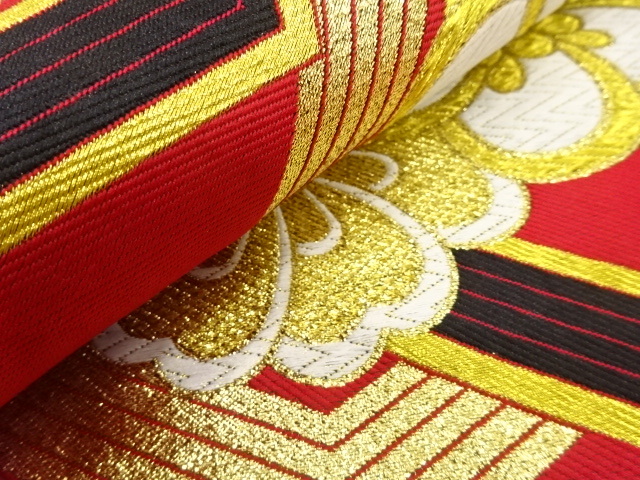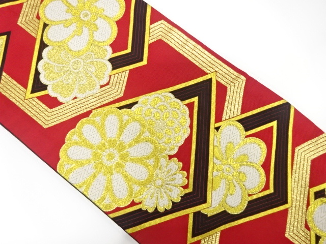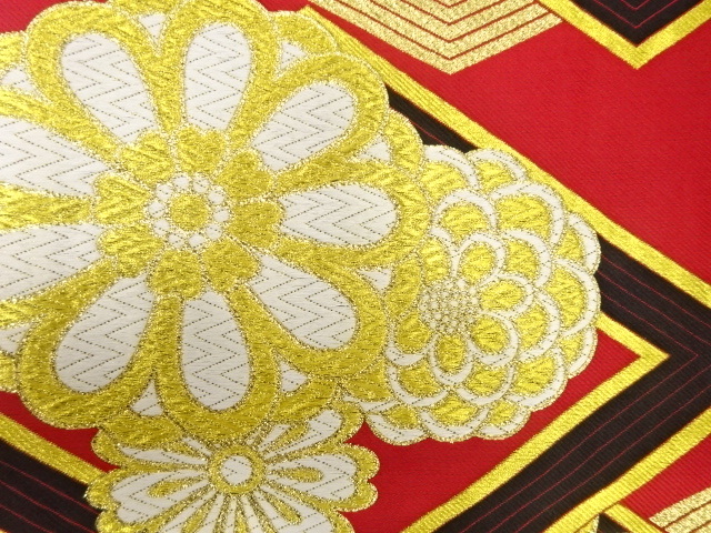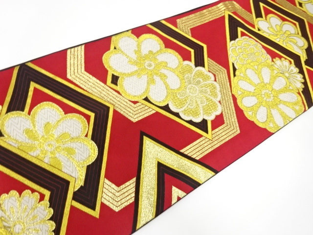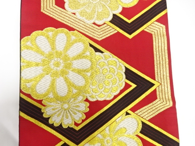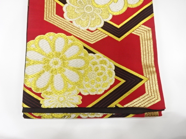 美品 未使用品 菊に幾何学模様織り出し 全通 振袖用 袋帯 (IH4K-035)