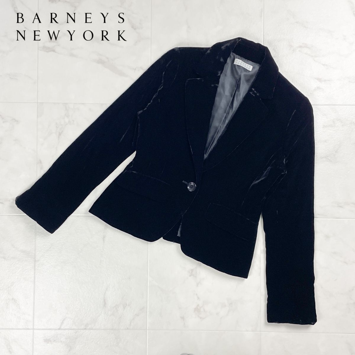 BARNEYS NEWYORK バーニーズニューヨーク ベロアテーラードジャケット 総裏 レディース ブラック 黒 サイズ38*GD792