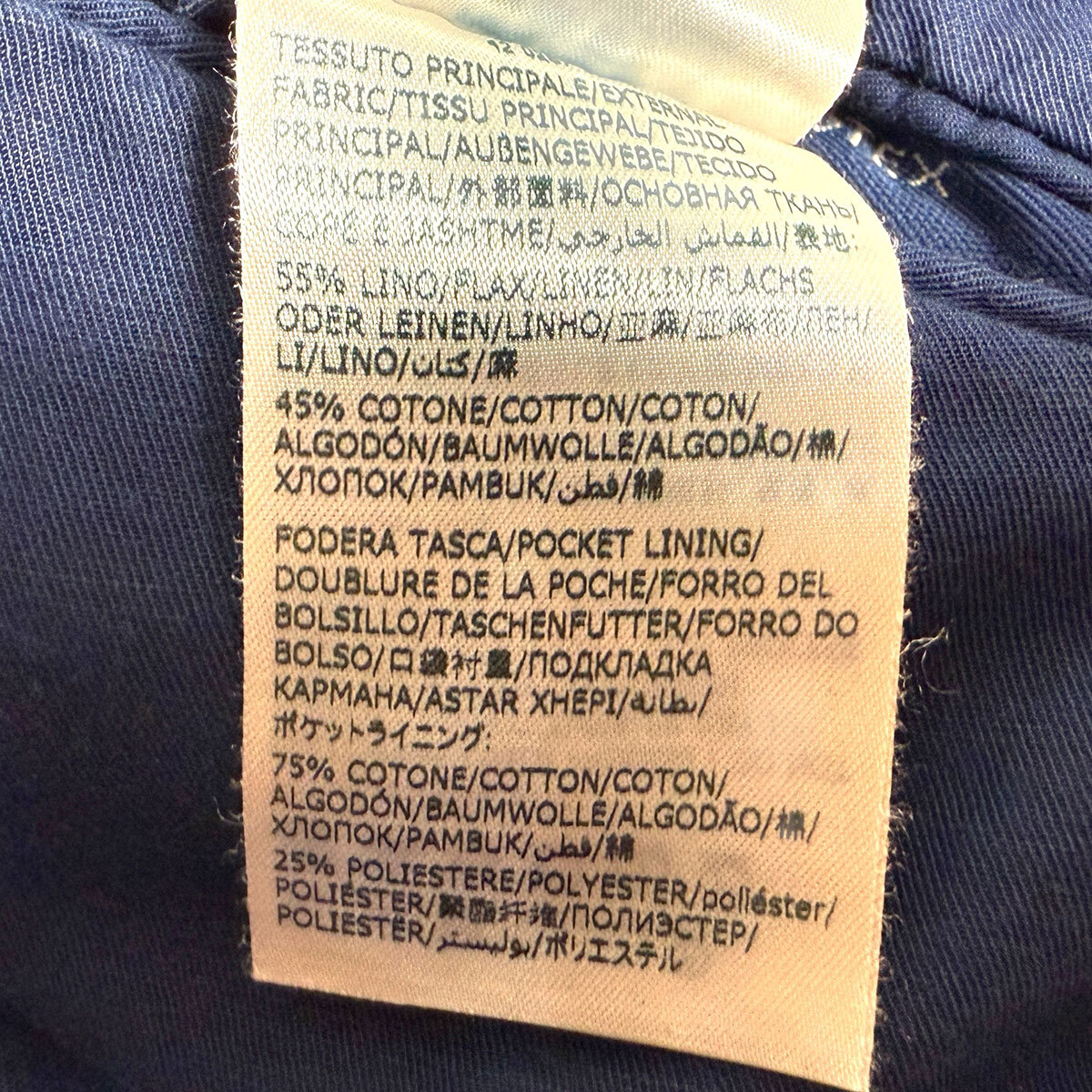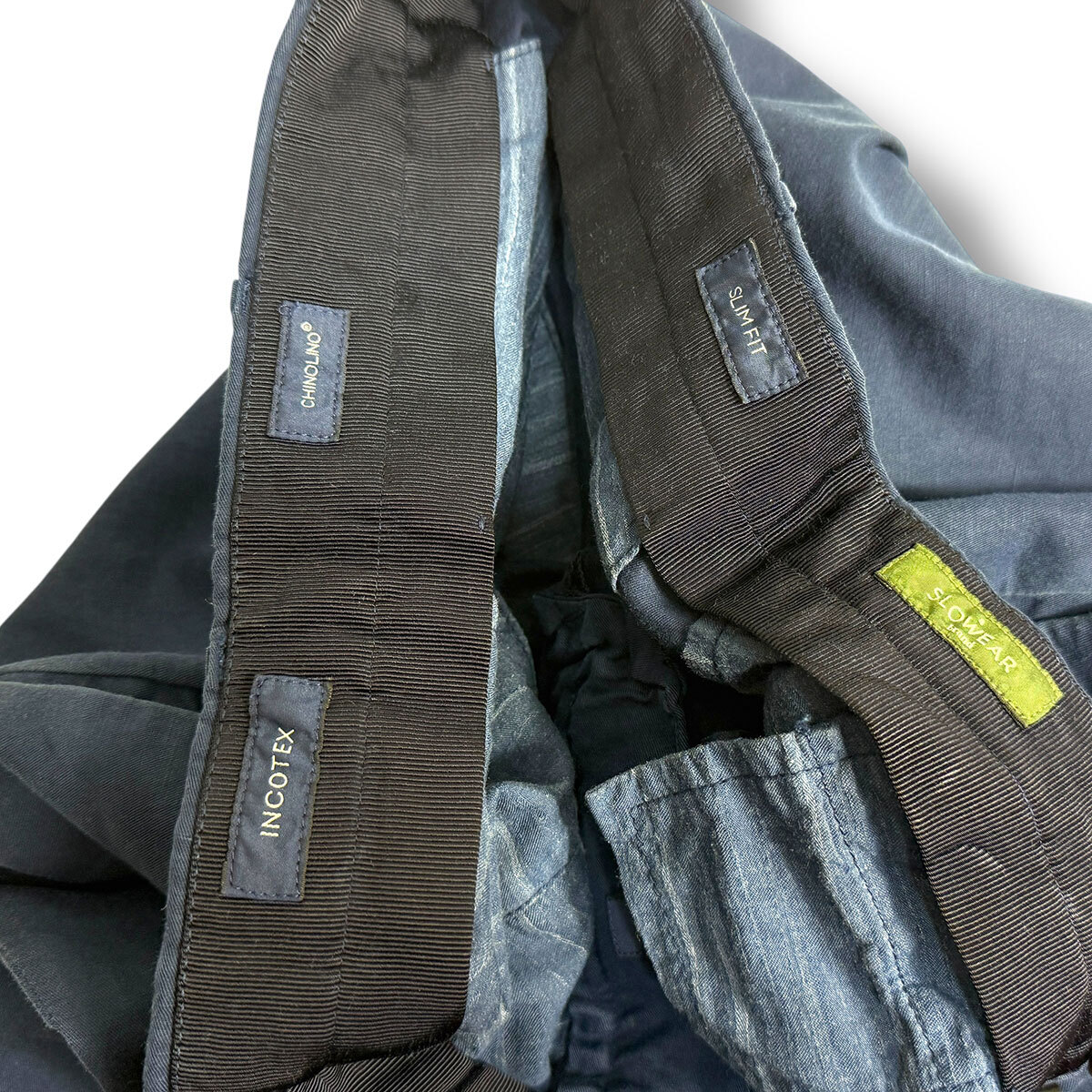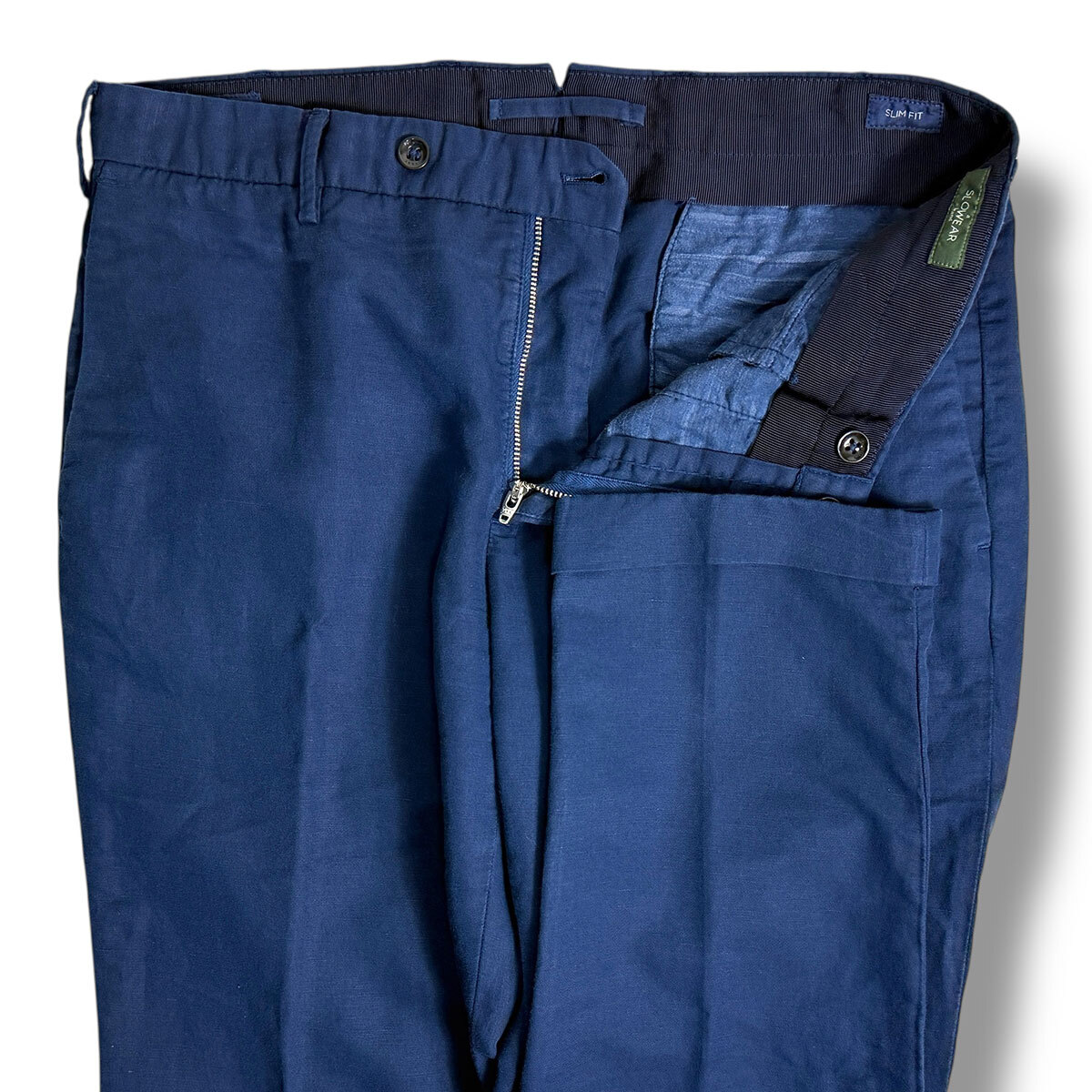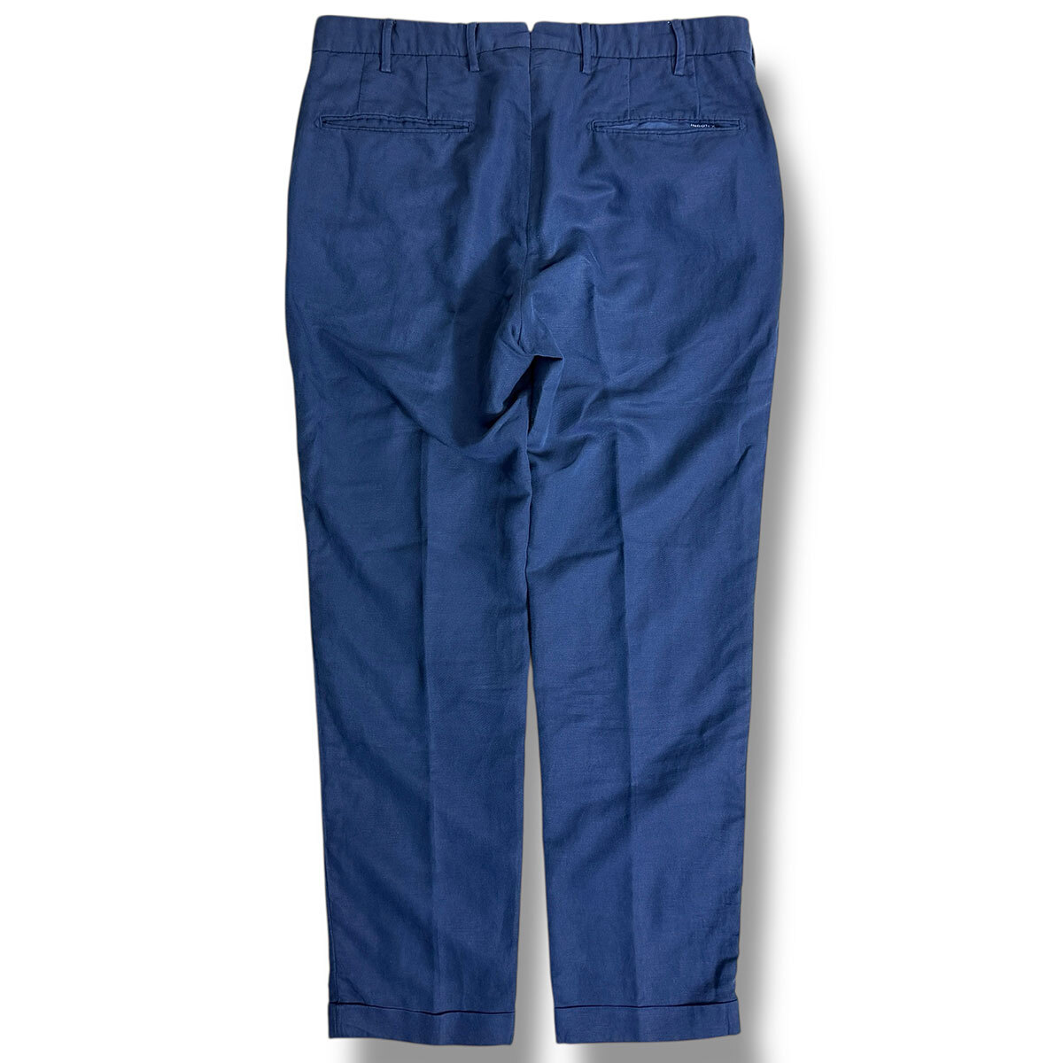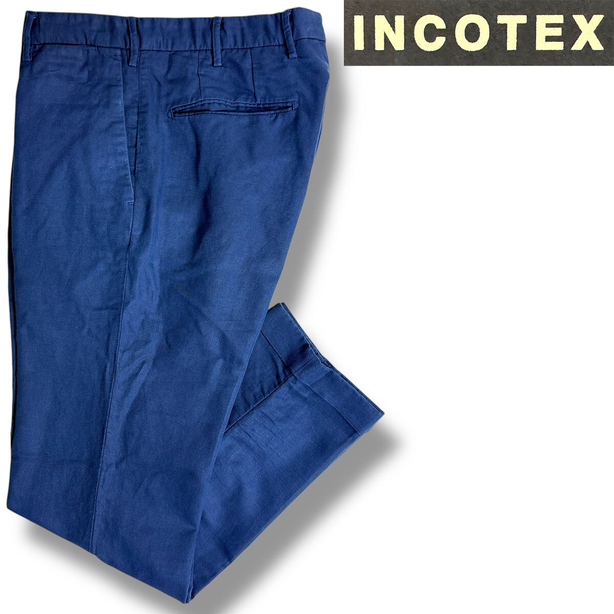 J7144 美品 インコテックス 現行 1W0030 30型SLIMFIT CHINO LINO ガーメントダイストレッチリネンコットンテーパードパンツ ネイビー 48
