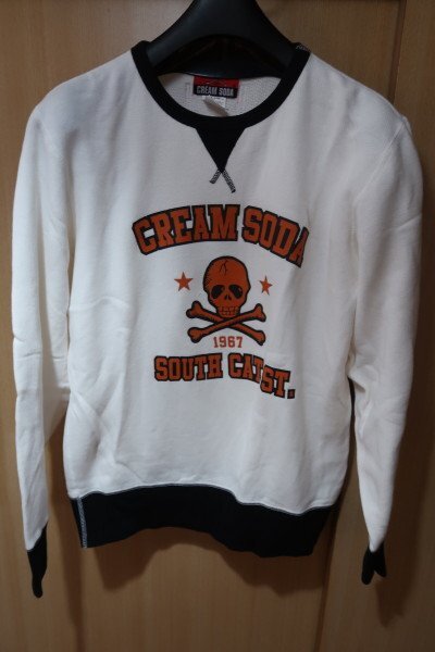 クリームソーダ スウェット Mサイズです、肩幅約48.5cm 着丈約63cm 身幅約52cm 袖丈約60cmです、使用感もほとんどなく綺麗な状態です、発送はレターパックプラスのみになります。