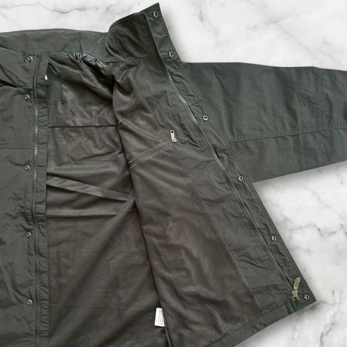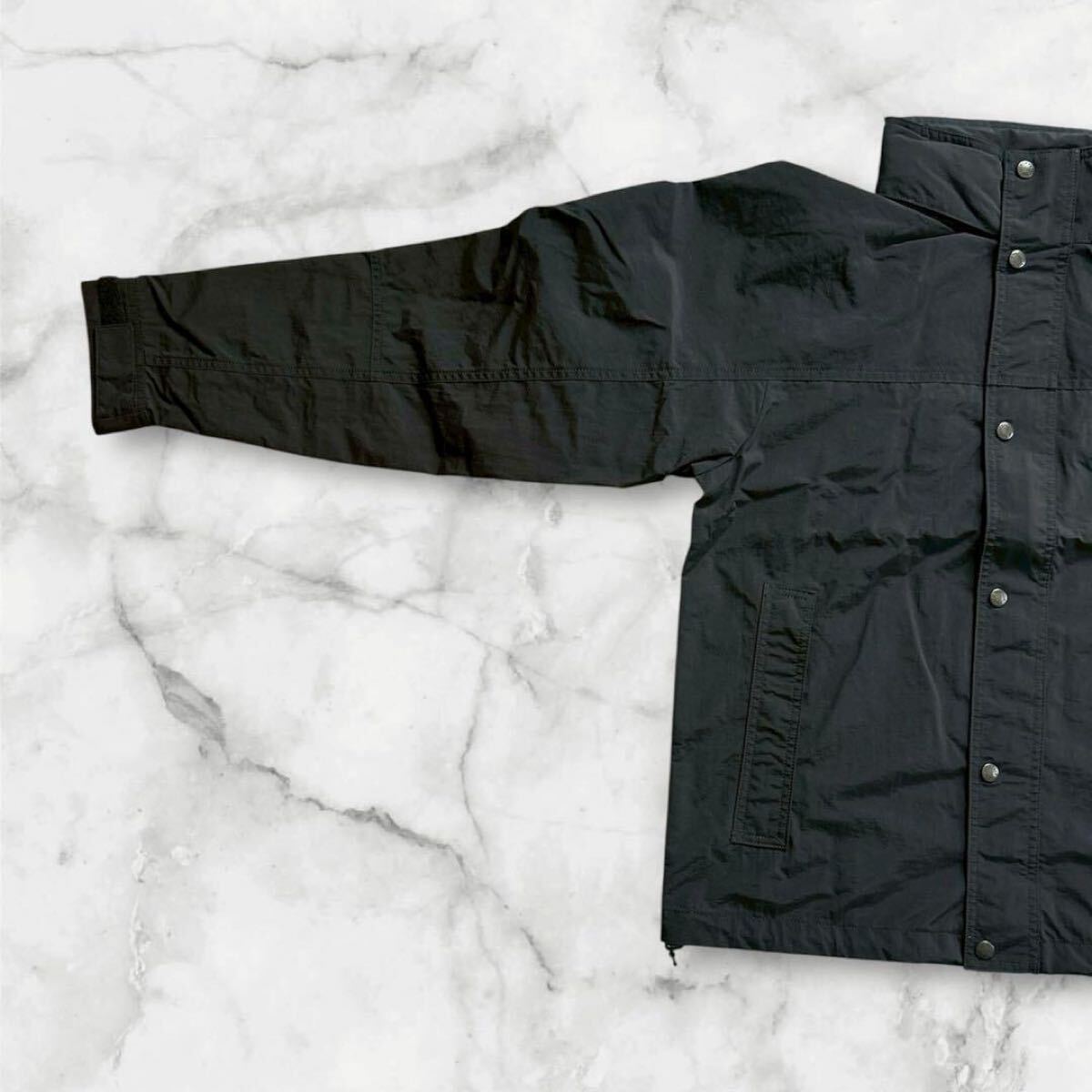 外出時の急な悪天候にも対応する、はっ水加工を施したウインドブレーカー。表地にはクラシカルでやわらかな風合いのタスランナイロンを使用。裏地は肌離れのよいポリエステルメッシュで、生地が汗で張りつくのを抑えます。裾は両脇のアジャスターで簡単に調節可能。フロントフラップはドットボタン仕様です。THE NORTH FACEの定番である、肩部分の切り替えを取り入れたデザインです。
