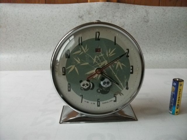 昭和レトロ ゼンマイ式 置時計 上海 中国 アラーム 時計 パンダ ビンテージ
