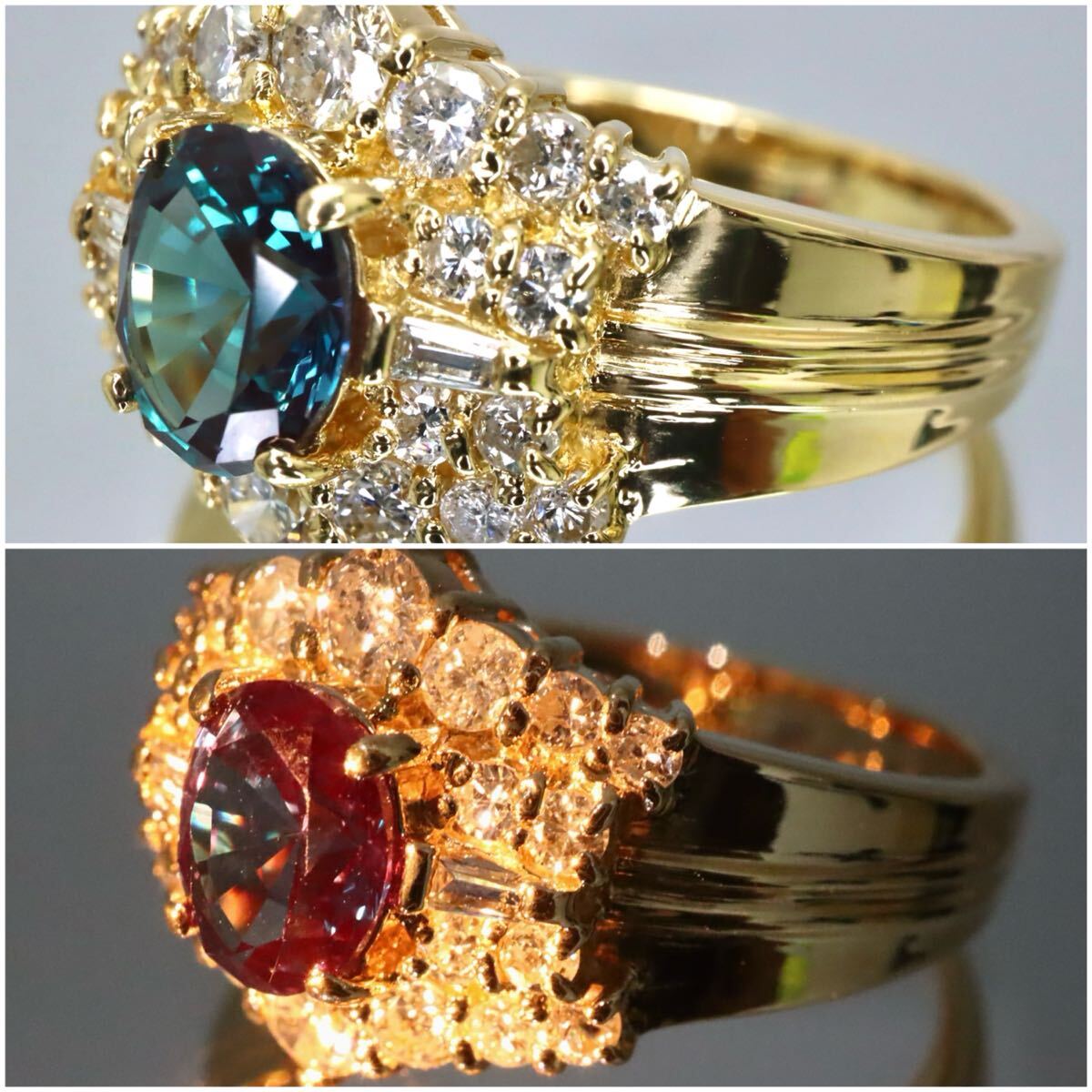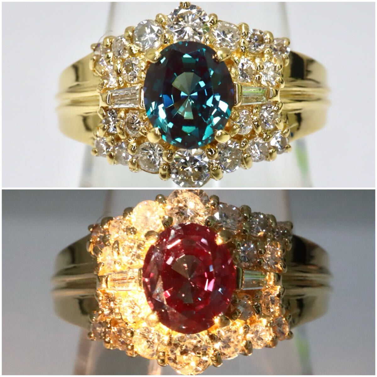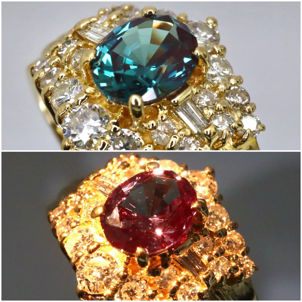〈アレキサンドライト/天然ダイヤモンドリング〉