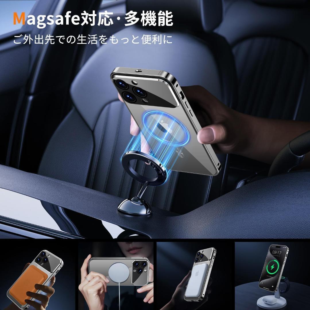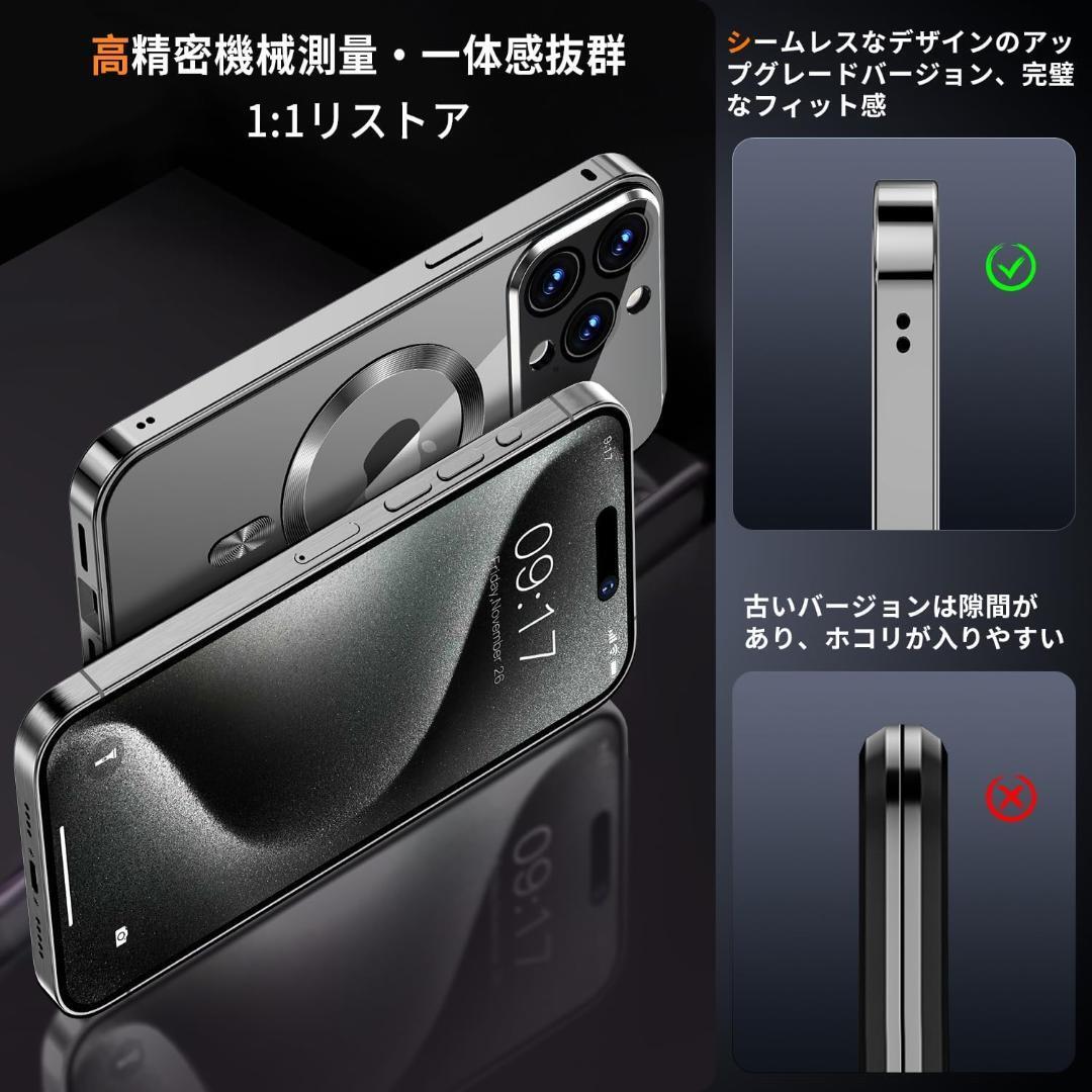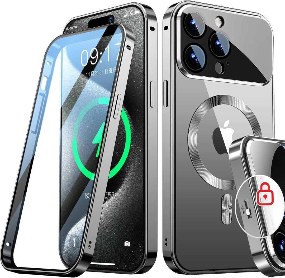 NO.S6-004★Rosycover【新次元の一体型レンズ・メカニカルロック】iPhone 15 Pro 用の ケース Mag-safe対応[360°全面保護・両面強化ガラス][本体の色・CD Mag-safeリング]マグセーフ ワイヤレス充電対応 ストラップホール付き アルミ合金バンパース アイホン15プロ 金属 ケースマホケース15 Pro クリア 人気 6.1インチ(チタングレー)