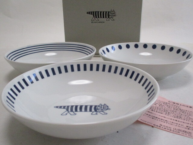 リサラーソン トリオボールセット ギフト可/ スープ皿 ボウル 17.3cm 3柄3枚 マイキー ハリネズミ ネコ 陶器 食器
