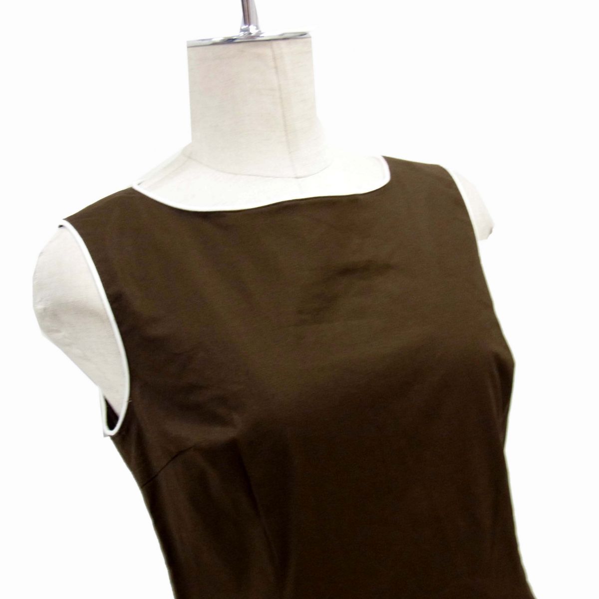 新品 定価16,000円◇ROPE ノースリーブ ワンピース サマードレス ブラウン バイカラー パイピング ロペ レディース 美シルエット