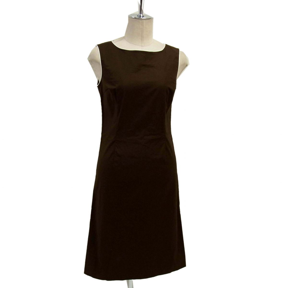 備考シックなカラーにホワイトのパイピングとバックファスナーのノースリーブワンピース。リラックス感のある襟ぐりラインと、身体が綺麗に見える様に計算されたシルエットがポイント。定価は16,000円【(株)ジュン】の正規品です。