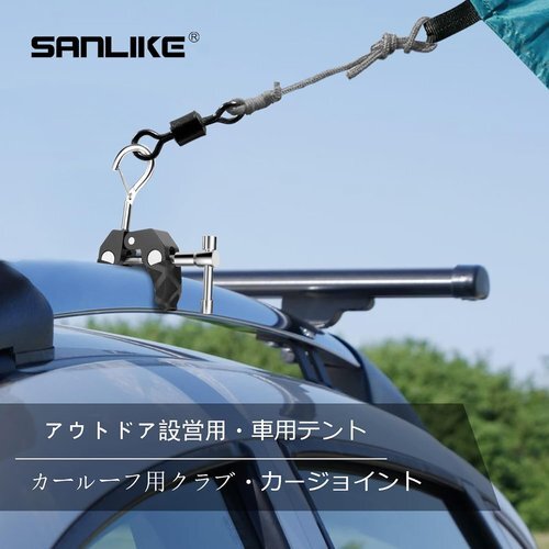 SANLIKE カージョイント カーサイドタープを車ルーフに固定用 設置簡単 コンパクト 頑丈 強力 自在金具 タープ部品 キャンプ用品 タープアクセサリー ランタンハンガーとしても ブラック 2個入り   2個入り  128