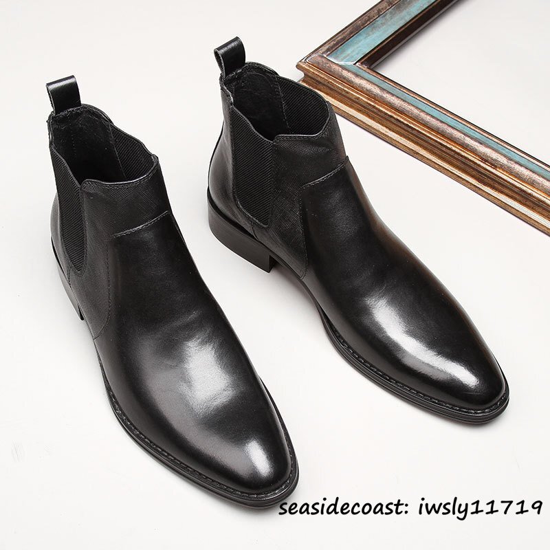 超希少*15万 ショートブーツ イギリス風 メンズ 本革 職人手作り 牛革 レザーブーツ ビジネスシューズ マーティンブーツ ブラック 26.5cm