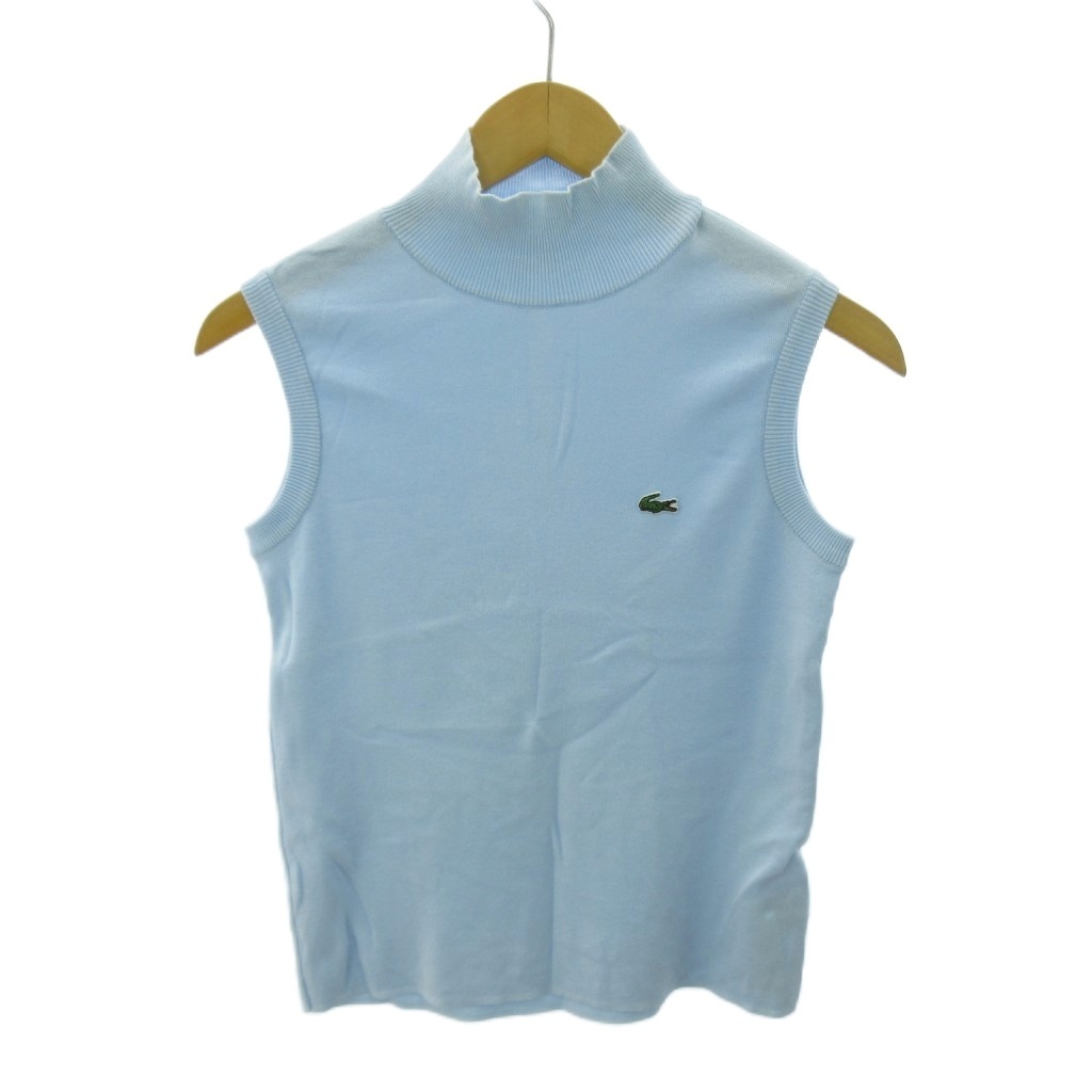 ラコステ LACOSTE ニット セーター ワニ ロゴ 刺繍 ノースリーブ 40 水色 ライトブルー 0906 レディース