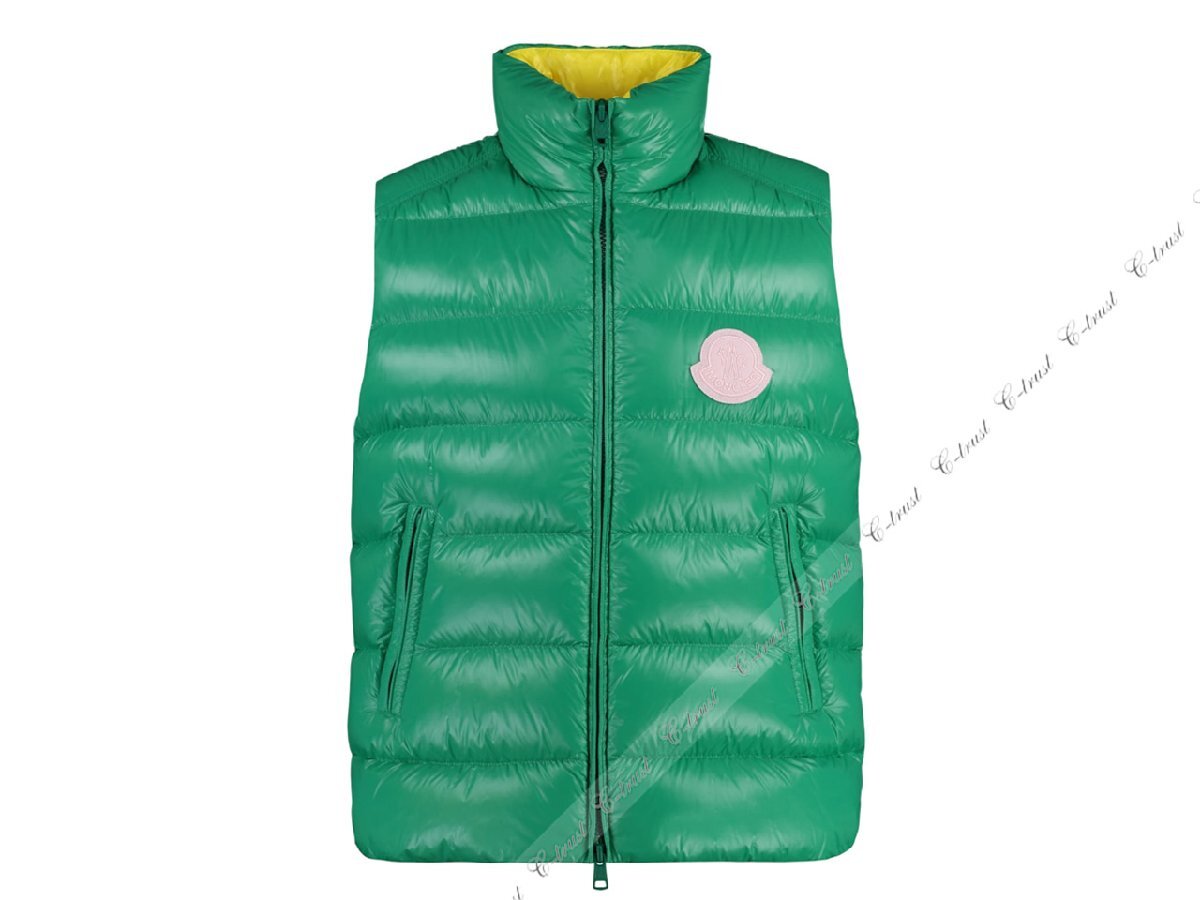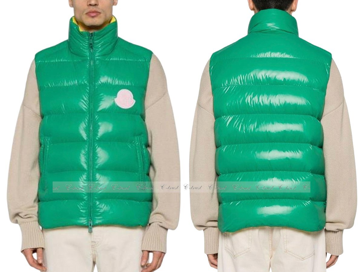 L671-2.. MONCLER モンクレール PARKE ダウン ベスト メンズ パッチ ロゴ ★ 850 グリーン