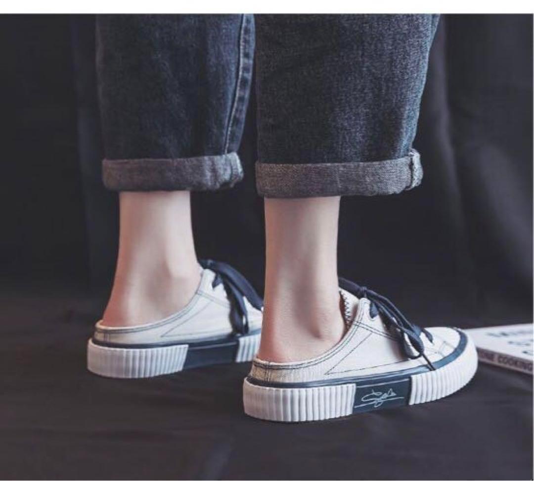 おしゃれなホワイトとブルーのサボサンダルタイプのスニーカー☆お散歩やピクニックなどお出か けにピッタリ