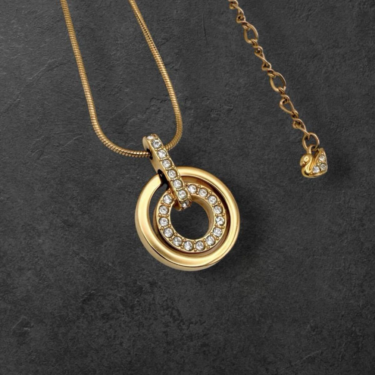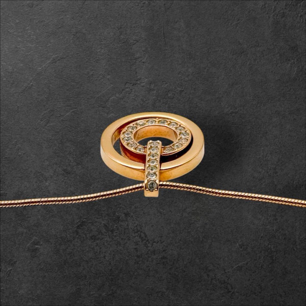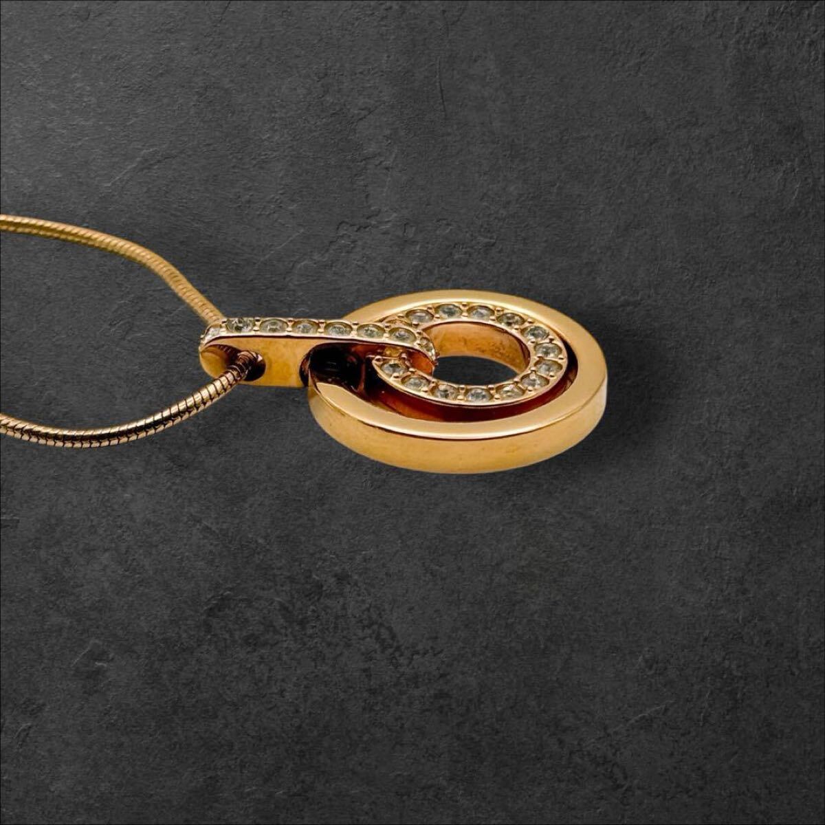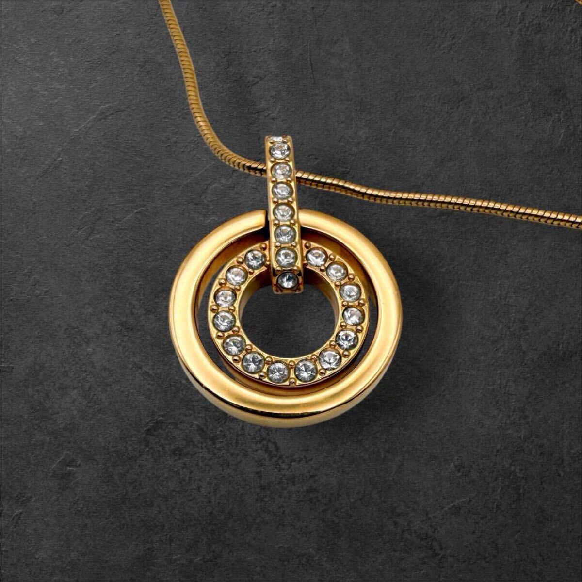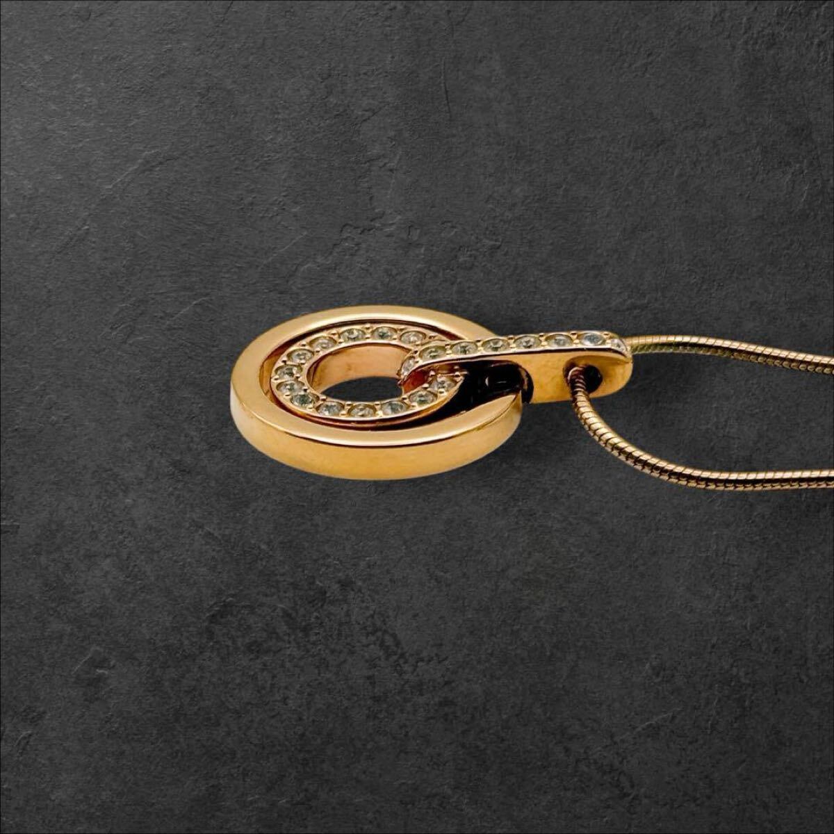 リング サークル 二重 ダブル 丸型 円 クリスタル ラインストーン チェーン ネックレス ペンダント ヴィンテージ ビンテージ vintage 極美品 金具 希少 アクセサリー