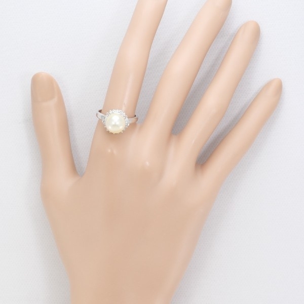 | PT900 リング 指輪 14.5号 パール(真珠) 約9mm ダイヤ 0.20 総重量約6.9g 中古 美品 送料無料 | |