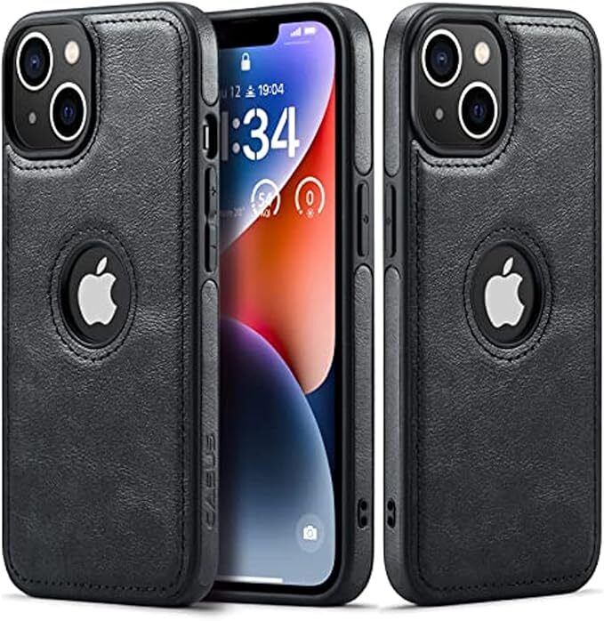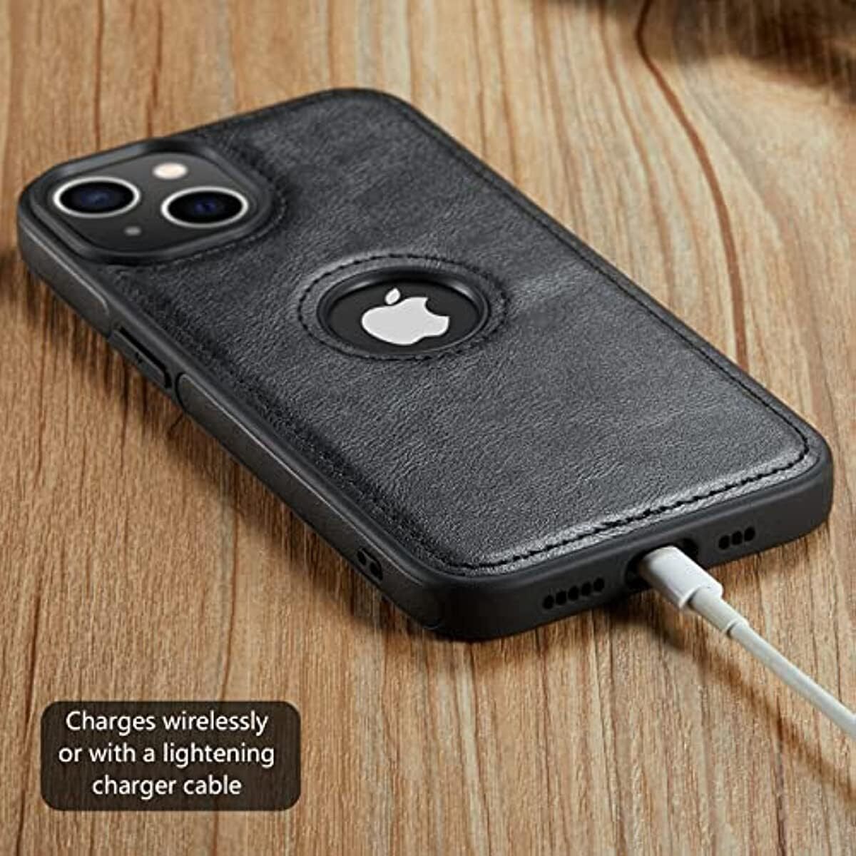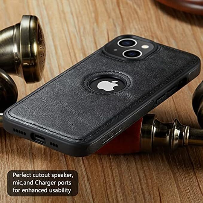 mj-H310★Sibada iPhone 14Plus ケース ユニークなロゴが見えるデザイン レザー クラシック ラグジュアリー ビジネス 画面保護 レンズ保護 スリム薄型デザイン 携帯電話ケース iphone14ケース 6.1" - Black