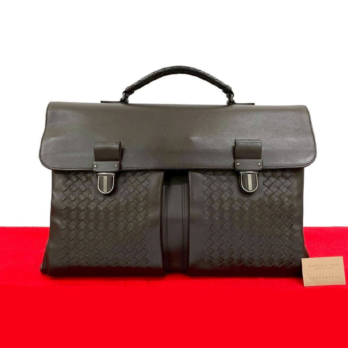 極 美品 BOTTEGA VENETA ボッテガヴェネタ イントレチャート レザー 本革 ビジネスバッグ ハンドバッグ ブリーフケース ブラウン 07888