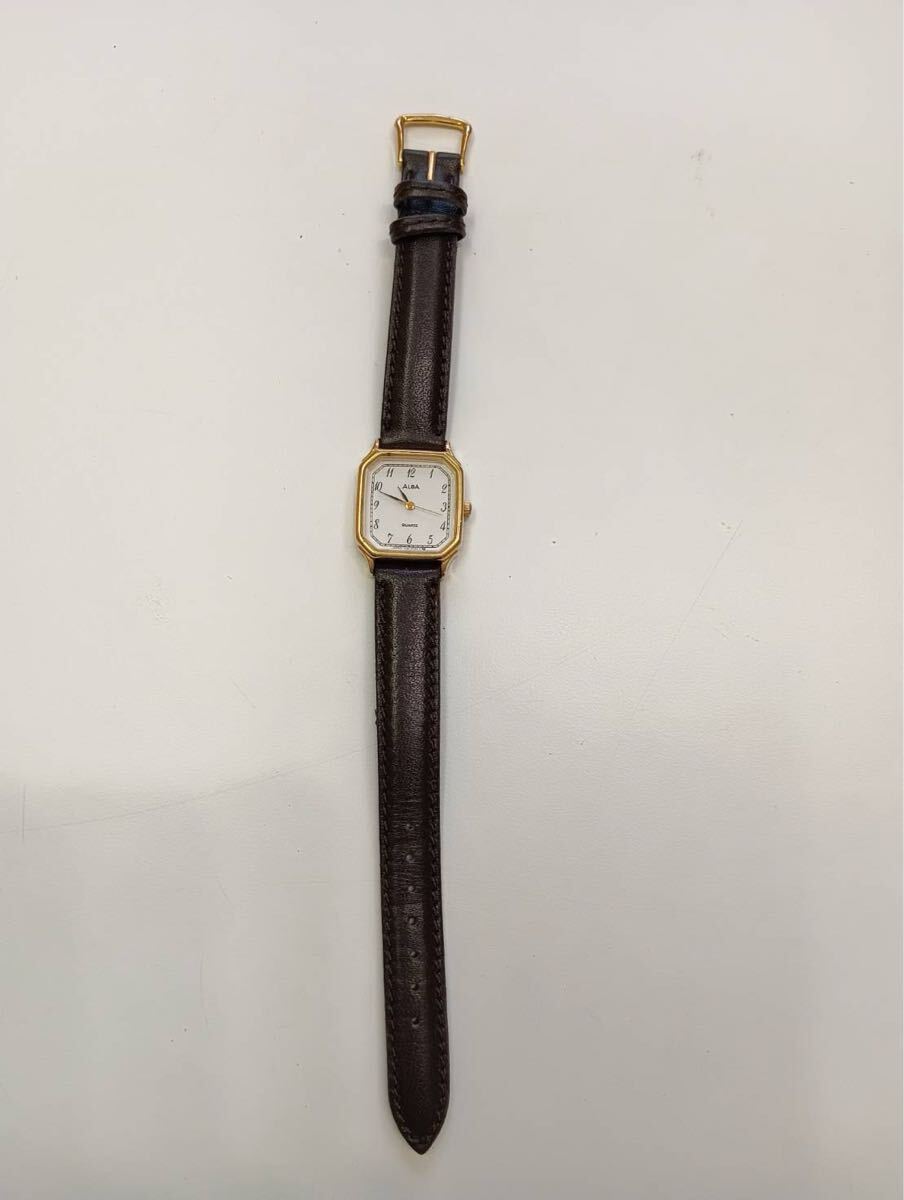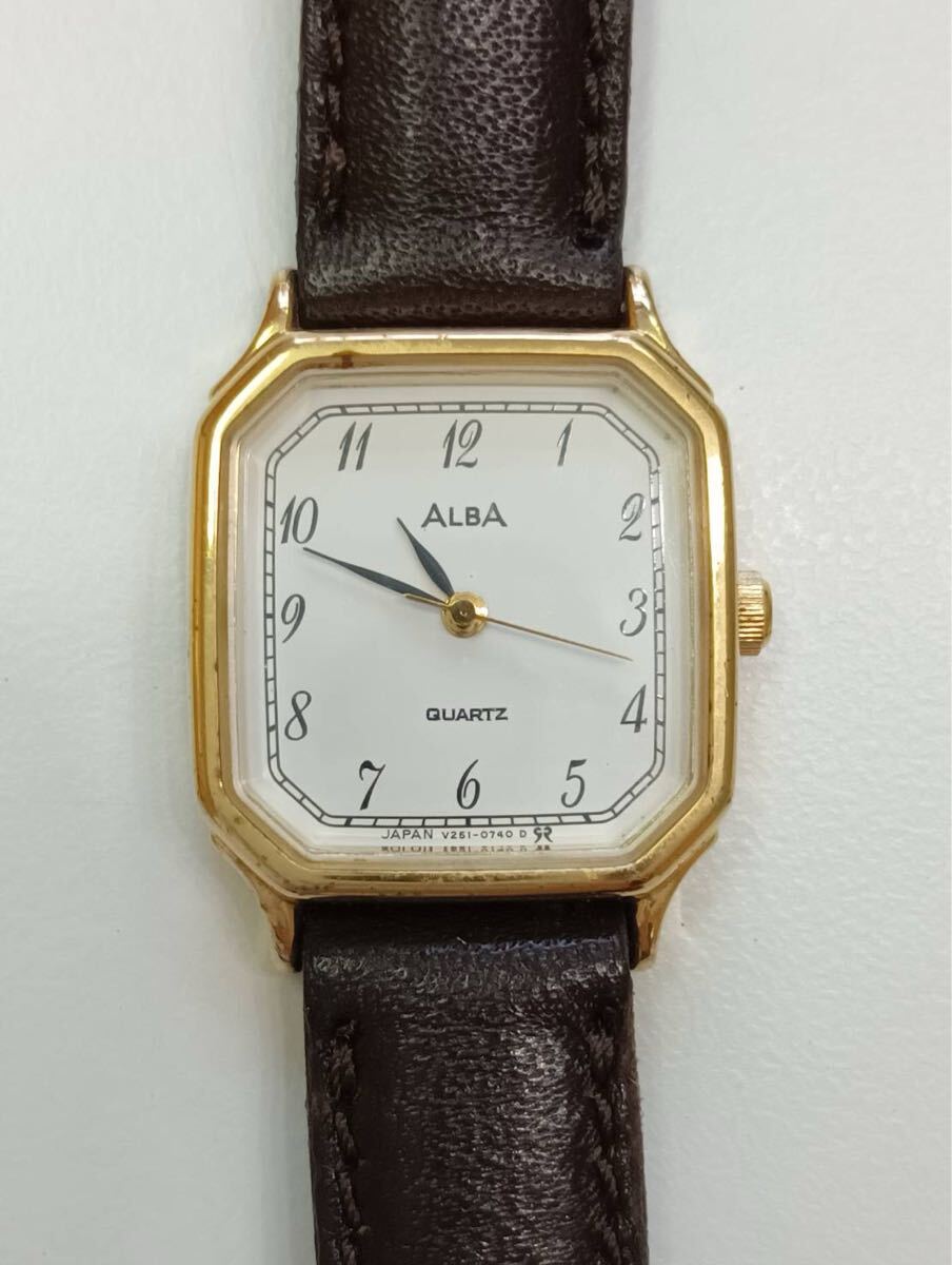 SEIKOセイコー ALBAアルバ 腕時計 クオーツ V251-5330 ゴールド×茶ブラウンベルト ステンレス 白文字盤 時計 現状品
